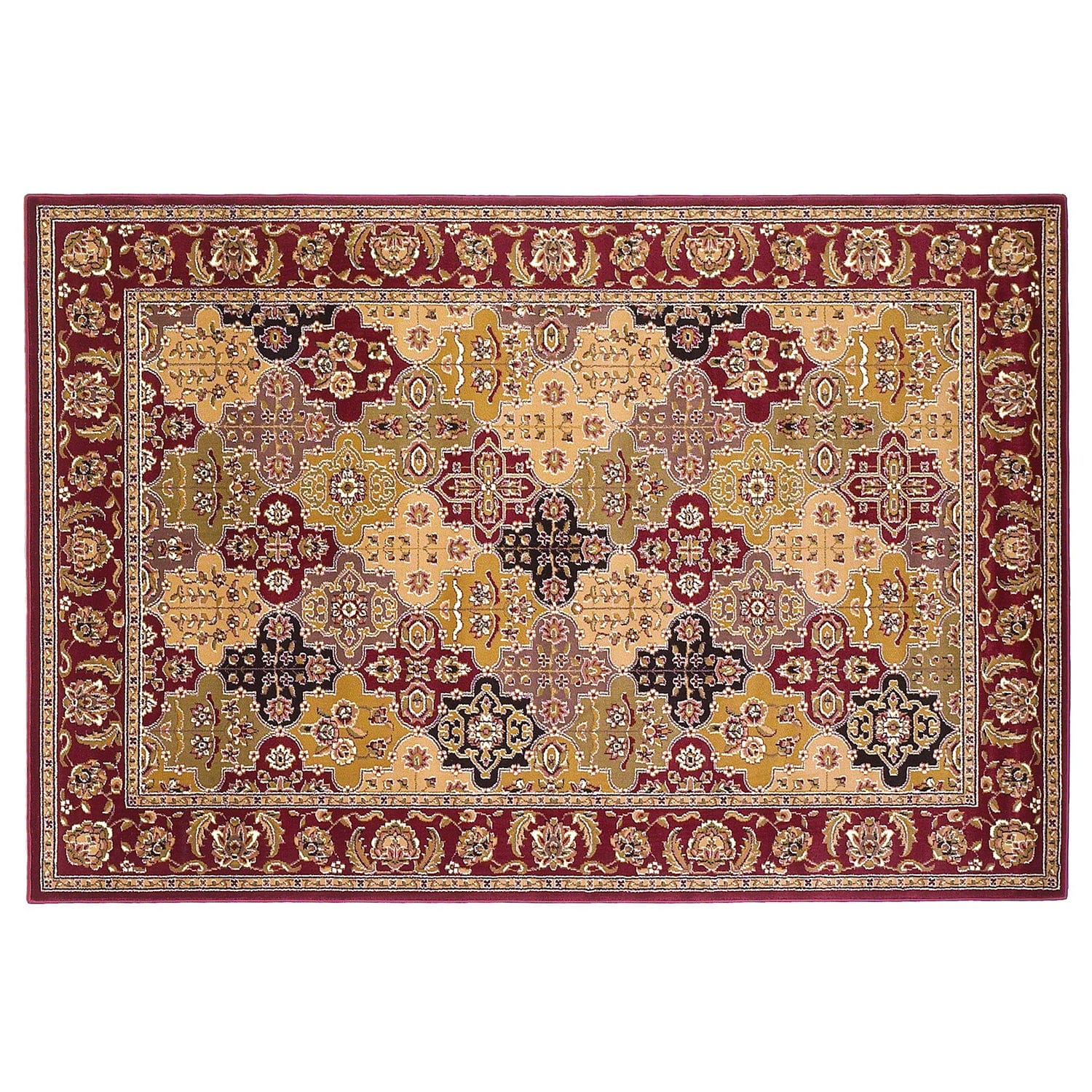 Jazz up your home with this breathtaking red kashan panel rug, which will make artistry out of your floors. Its a worldly piece, which will definitely impress all who see it and turn the heads of your friends and guests. This rug is a high quality piece made in China, which is machine-made of heat-set polypropylene with no backing. Its current color palette in classic and transitional patterns will give an appealing modern feel to the look and feel of your home. As for measurements, they are 1/2" for height, 118" for width, and 158" for depth. To care for it, vacuum it regularly and spot clean any stains. Its also recommended that you have it professionally cleaned every now and then. If you want a lovely and practical rug that can blend seamlessly into any decor, this is the one for you..