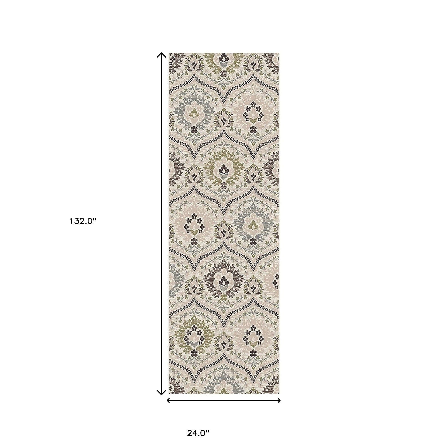 Add great coloration and comfortable texture to your space with this 11' runner multi-colored floral stain resistant runner rug. This runner shaped rug features a floral design in multi-colored to give it visual interest. A classic shape marries with good looking design for your space Ideal for spaces with kids and pets, this rug is stain resistant to help repel stains and spilled liquids. Place this area rug against a hardwood or tile floor and it will enliven your living space with style and sophistication. 0.31" H x 24" W x 132" D
