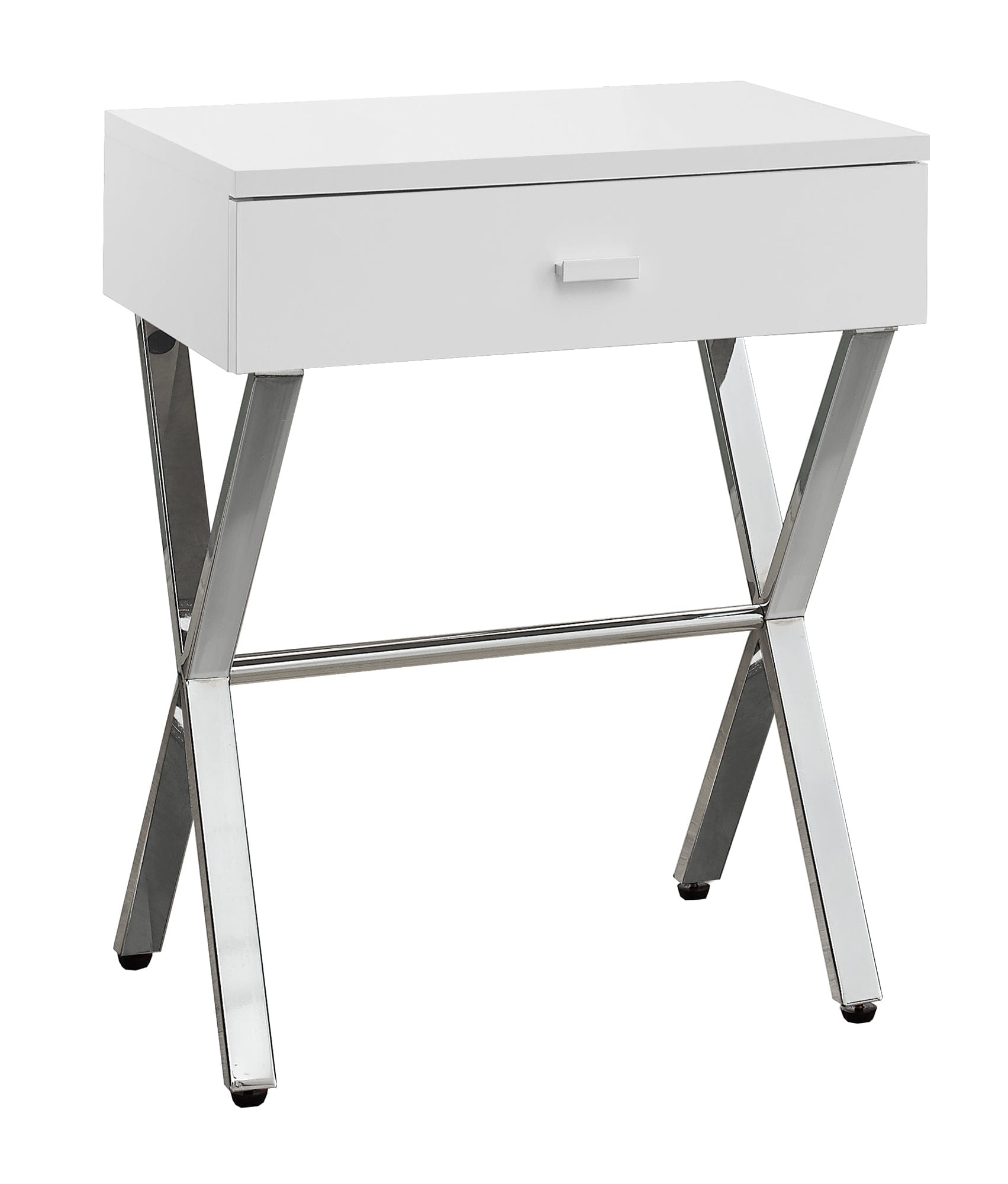 12" X 18.25" X 22.25" White Finish And Chrome Metal Accent Table