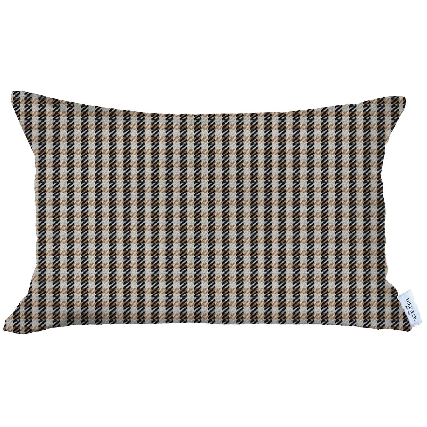 12" X 20" Brown Houndstooth Zippered Handmade Polyester Lumbar Pillow Cover
