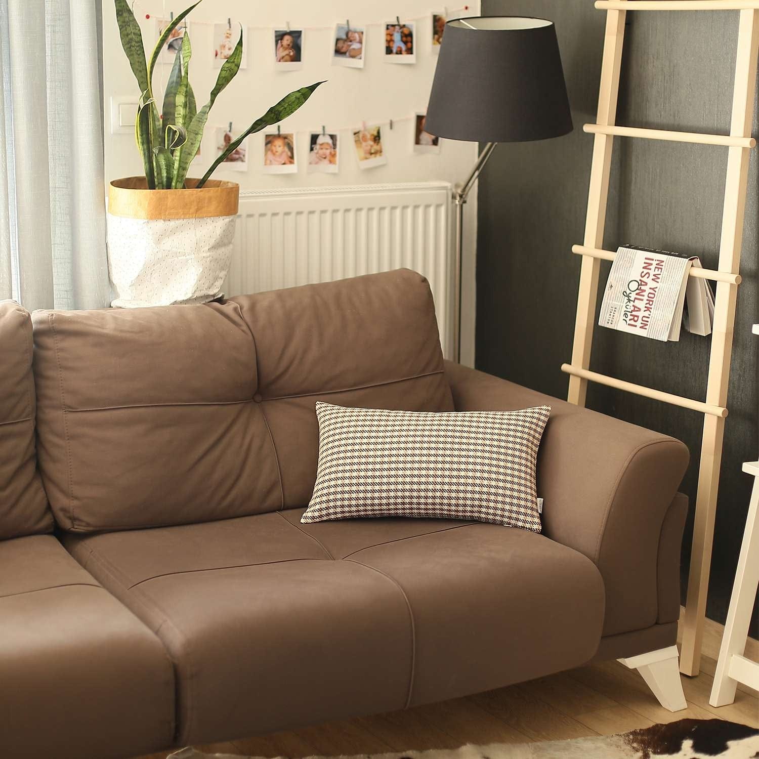 Bring a bit of fashion and zip to your space with this eye-catching and comfy 12" x 20" brown houndstooth zippered handmade polyester lumbar pillow cover. This soft and durable decorative pillow cover is expertly made of high grade, long lasting polyester in a brown coloration. Great to use on its own or mix with other decorations for the perfect look. A great decorative accessory for your favorite chair, to accent your sofa, or to use as part of your bed ensemble. 0.1" H x 12" W x 20" D