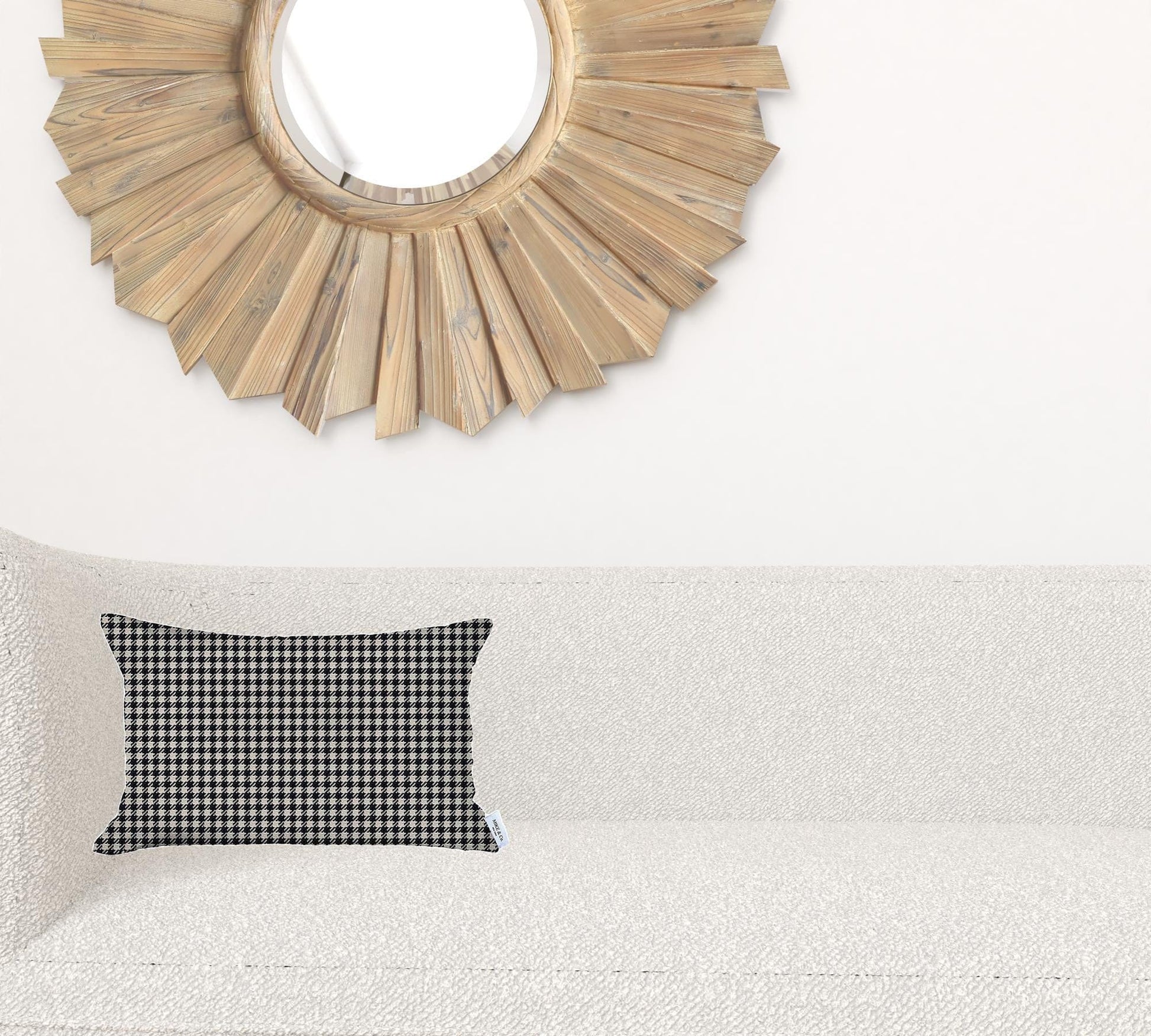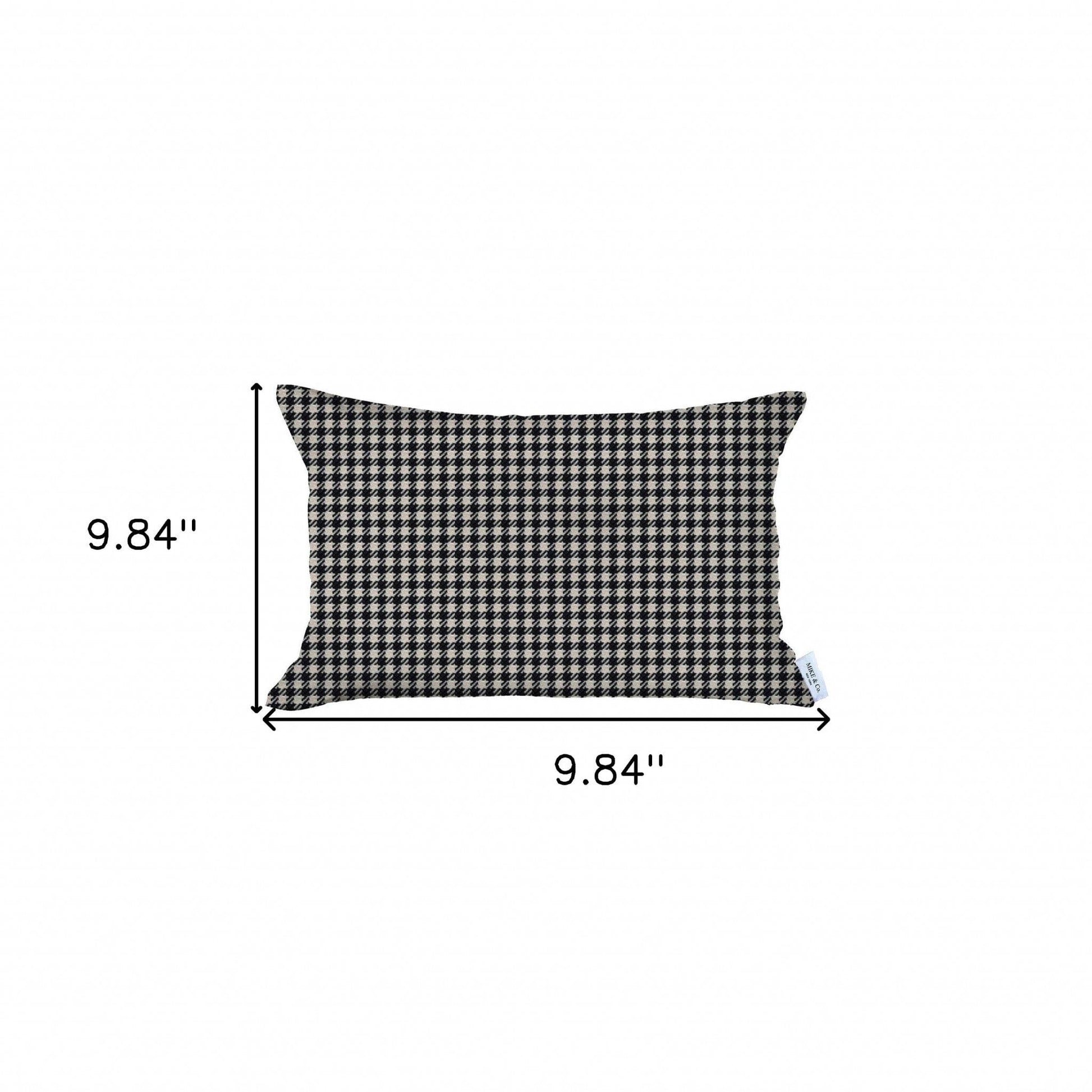 12" X 20" Grey Houndstooth Zippered Handmade Polyester Lumbar Pillow Cover