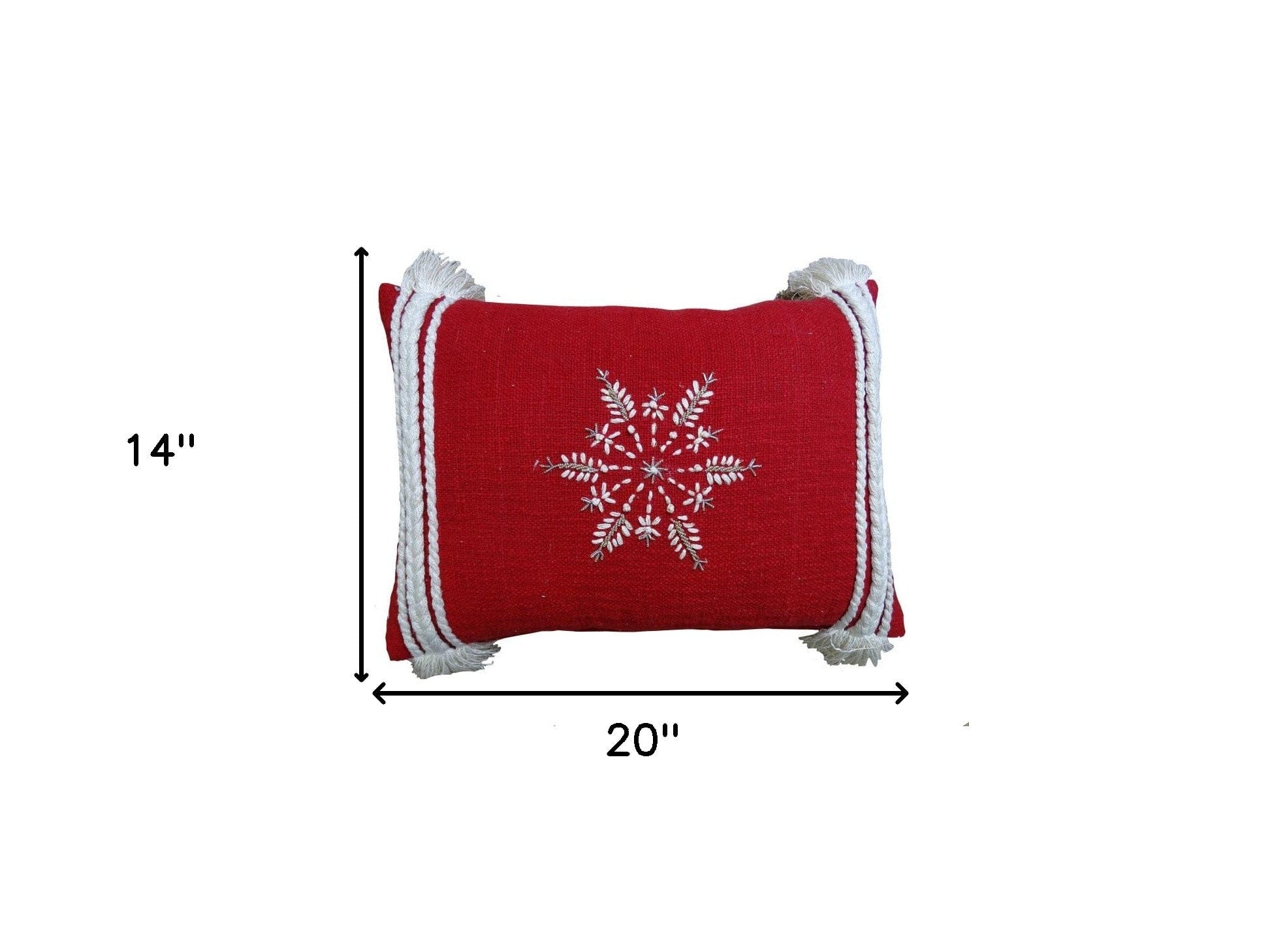 14" X 20" Red Zippered Cotton Blend Christmas Snowflakes Throw Pillow With Embroidery