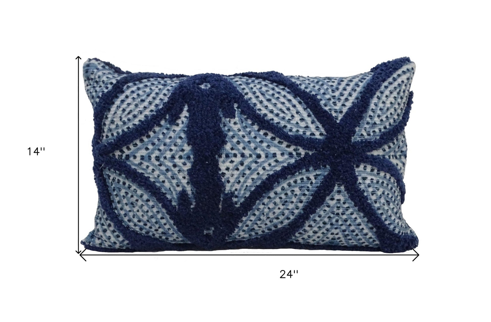 The perfect complement to your sofa, favorite chair, or bed, this 14" x 24" blue and light blue zippered cotton blend trellis throw pillow is a great decorative accent. Great to use on its own or mix with other decorations for the perfect look. Decorative pillows are a great way to change up the look and feel of your space easily and quickly. 10" H x 14" W x 24" D