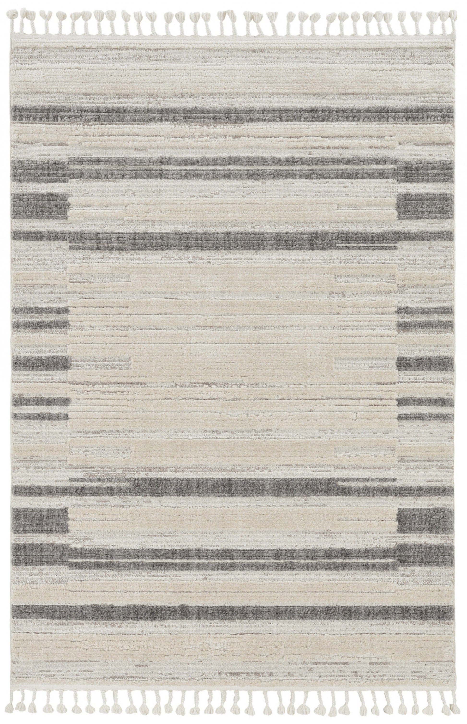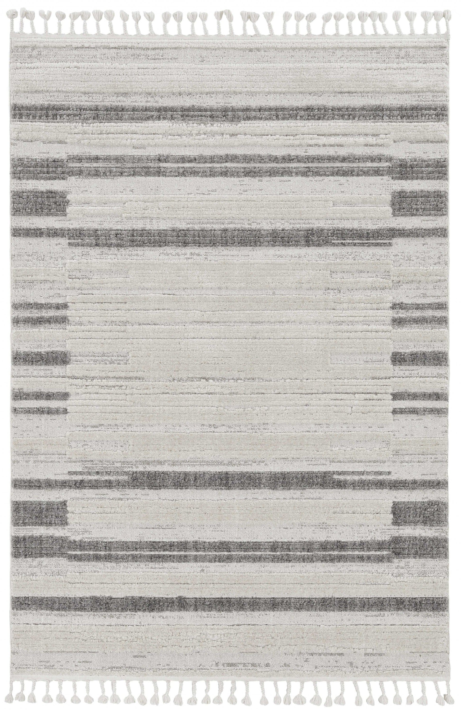 Combined with comf or t, style, and design these rugs are out of this w or ld trendy! Willow is 100% polyester machine woven with a dec or ative cut loop pile and of course, fringe! These rugs will be a statement piece in your home f or years. Exclusively made in Turkey. Willow 1106 Ivory Grey Landscape 12 x 15. Machine-Woven of Polyester with No Backing. Made in Turkey. Vacuum regularly & spot clean stains. Professional cleaning recommended periodically.