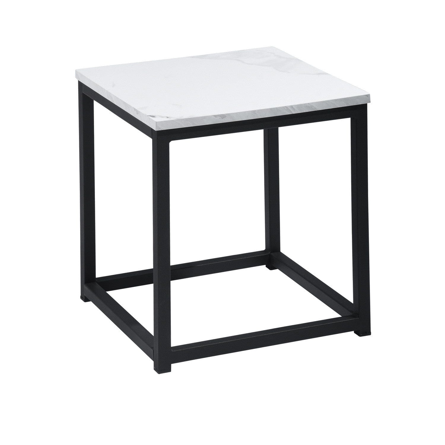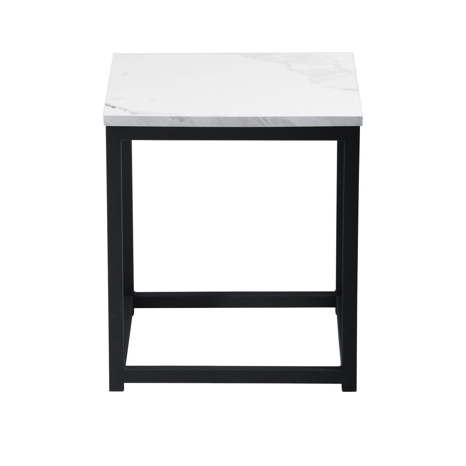 Optimize your space and add some charm to your room with the 16" black and marble white manufactured wood and steel square end table. Crafted from manufactured wood, this sturdy and versatile little table has a charming style. The base of this table is made from steel in a black color that is a nice contrast to the marble white manufactured wood tabletop. An ideal location for placing your snacks and drinks, and a place to keep your lamp, frames, or other accessories. This versatile table is a great accent for almost any room. 15.7" H x 13.8" W x 13.8" D