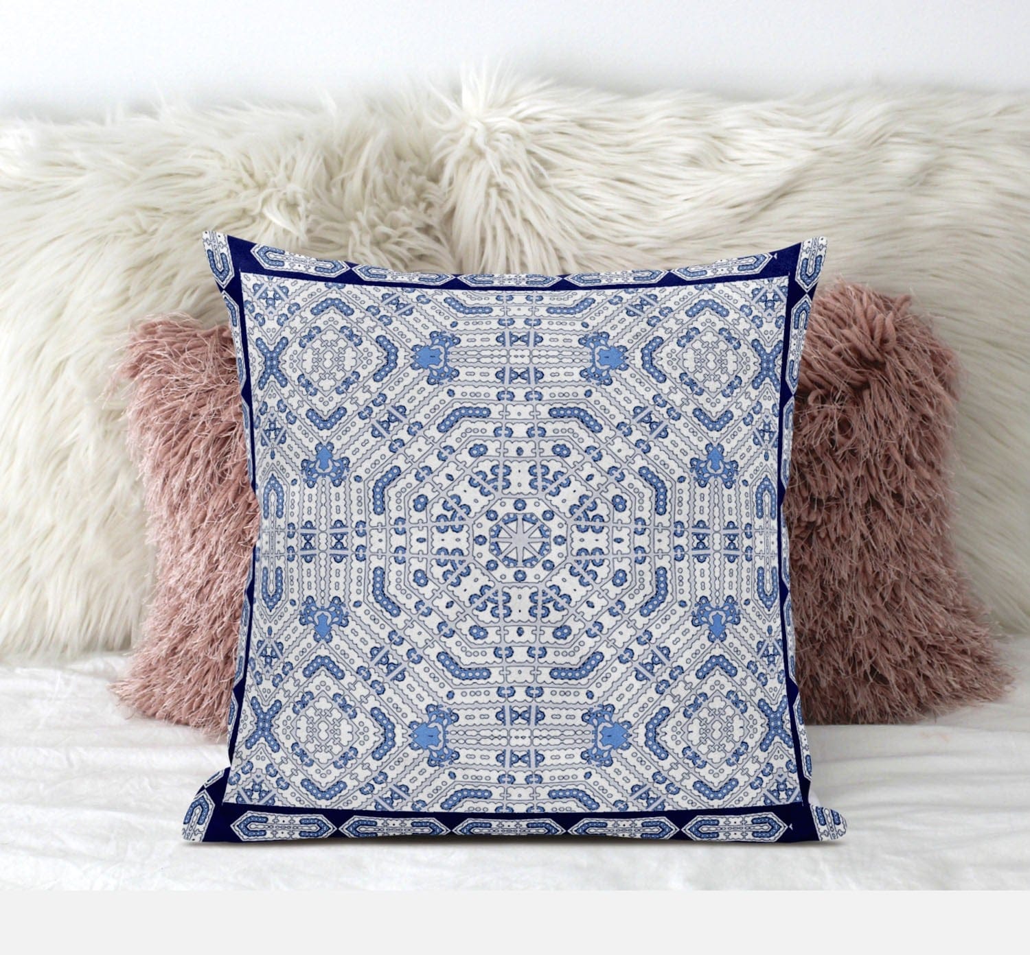 Calm and comforting in its cool-toned hues, this Blue Gray Geostar Zippered Suede Throw Pillow will evoke a relaxing atmosphere in your living room. The intricate detailing in soft blue and gray creates an intriguing illusion of a geometric star pattern over an icy white base for visual interest. The glossy sheen and luxurious texture of the suede offer a smooth and luxurious finish for ultimate style and comfort. The soft polyfill insert offers a fluffy look with a cozy feel while the zippered closure makes the cover easy to remove and clean. The subtlety of the palette and intricacy of the patterns make this throw pillow a unique piece of décor to work well with any modern or bohemian décor. 16” x 16” x 5”