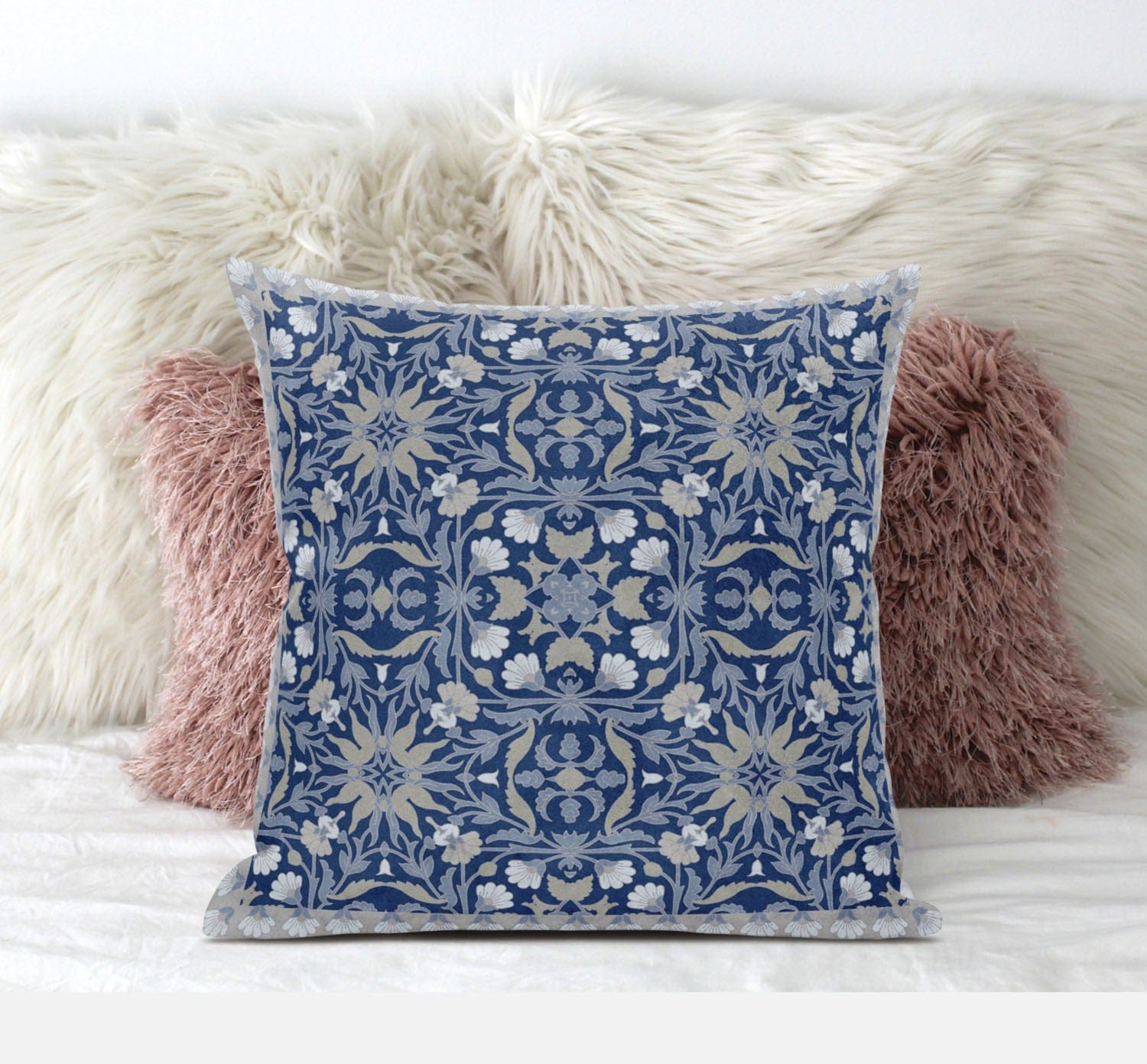16” Blue Gray Paisley Zippered Suede Throw Pillow