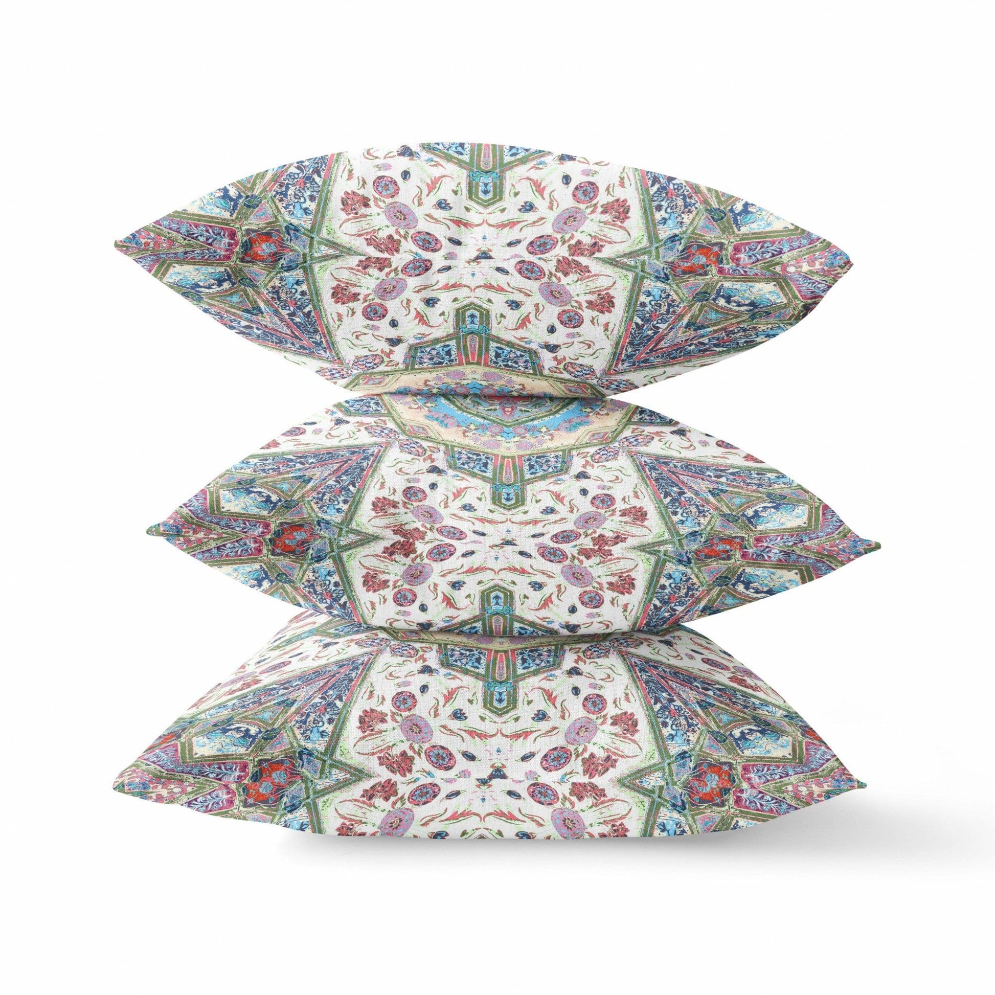 Wrapped in modern elegance with a bohemian flair, this Cream Pink Boho Flower Suede Throw Pillow is sure to spruce up your living space with its eclectic pattern and palette. The intriguing floral medallion in shades of aqua blue, pastel pink, green, and cream make this spectacular piece of décor one-of-a-kind in the room. Made in the USA from superior grade suede fabric for a durable structure and a soft feel with an alluring shine on the fabric that’s meant to last for years to come. This blown pillow is filled with a 100% polyester fiber insert, giving it a luxurious cushiony feel and a fluffy nature for optimal comfort when you lean on it. If you want a subtle yet eye-catching element in your living room, opt for this lovely throw pillow that’s suitable for a range of modern, contemporary, and traditional décor. 16” x 16” x 5”