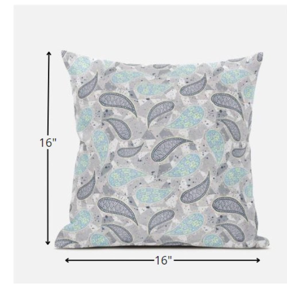 16” Gray Turquoise Boho Paisley Zippered Suede Throw Pillow