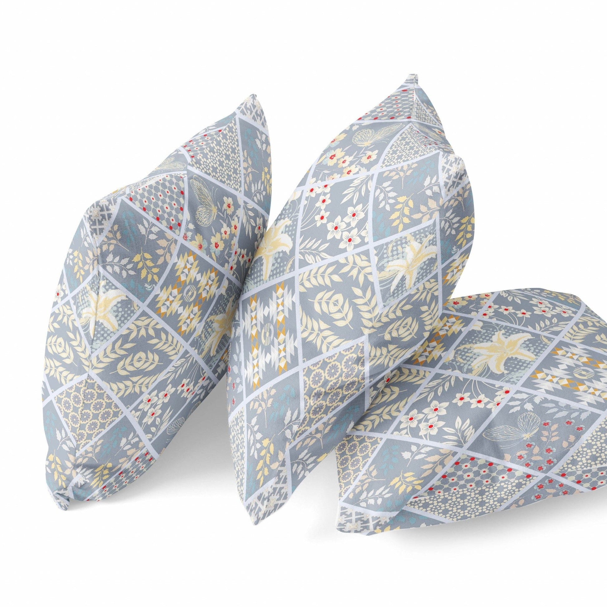 The understated elegance of this Gray Yellow Patch Suede Throw Pillow is sure to add a sense of style and sophistication into your modern or bohemian ensemble. The bluish gray-toned patches are decked with floral patterns in yellow and white to add a lively spirit to this accent piece. The smooth texture of the appealing suede fabric is sure to add a luxurious touch to the piece while making the pillow highly durable with a soft hand. The blown and closed pillow features a soft polyfill insert for added fluffiness that is meant to enhance the aesthetic of your boho-chic ensemble while maximizing comfort. The classy choice of colors and patterns makes this decorative pillow an amazing piece of décor to set an inviting tone in the room. 16” x 16” x 5”