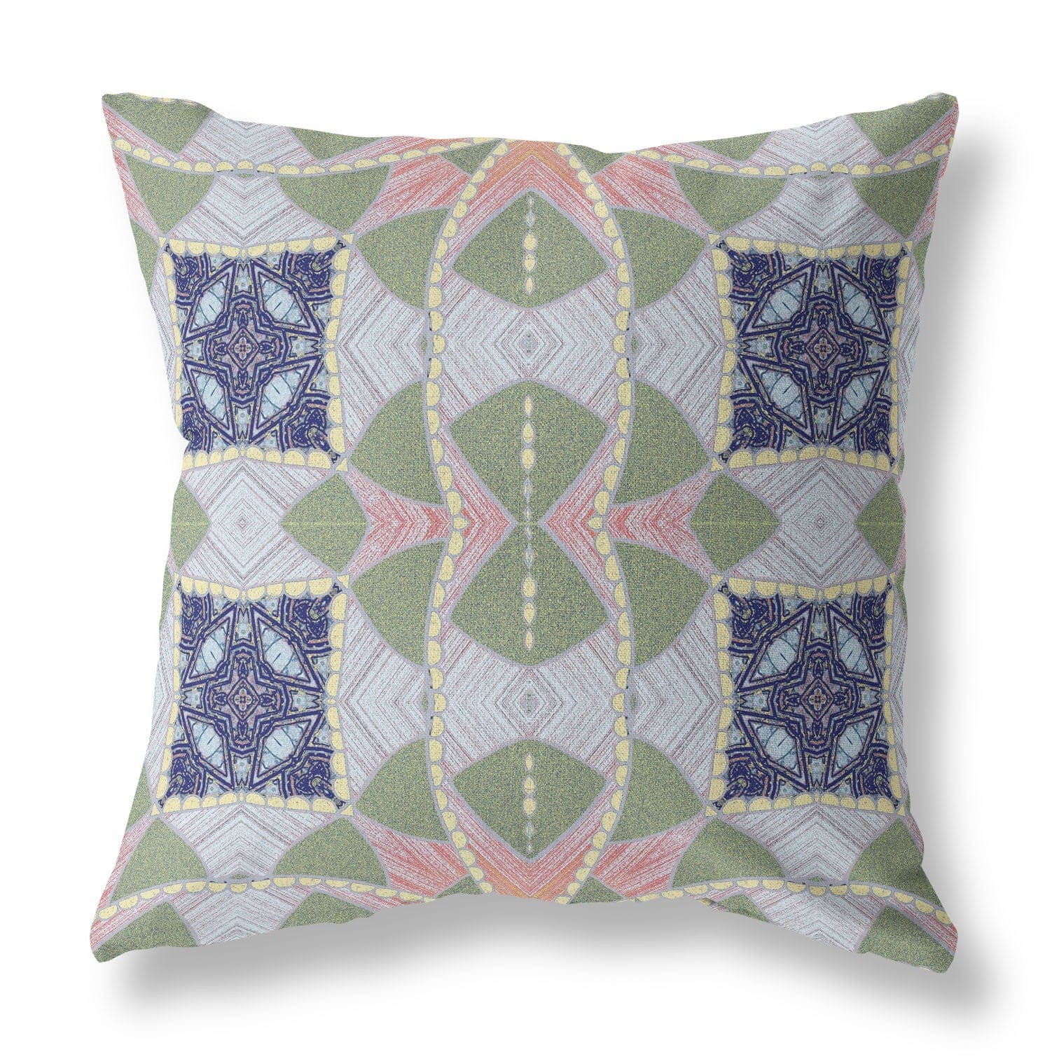16" Green Pink Cosmic Circle Boho Suede Throw Pillow