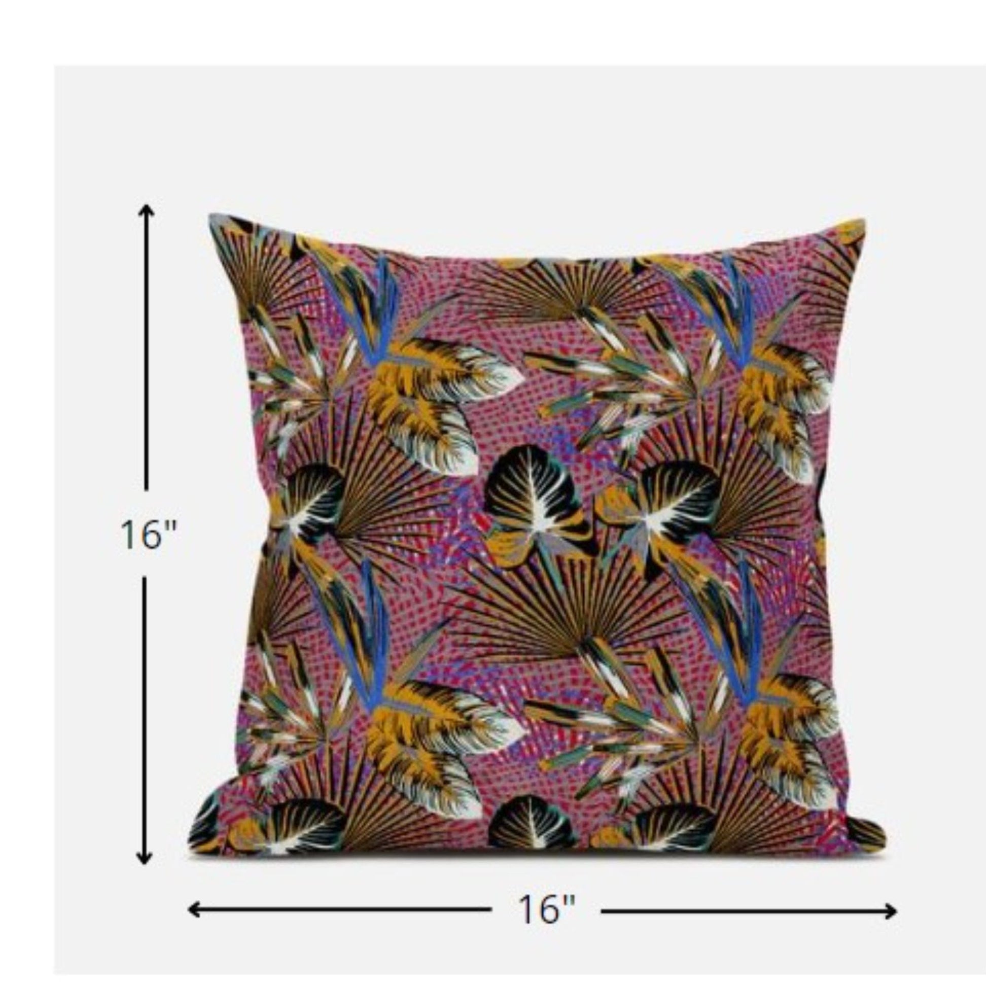 16” Magenta Gold Tropical Suede Throw Pillow