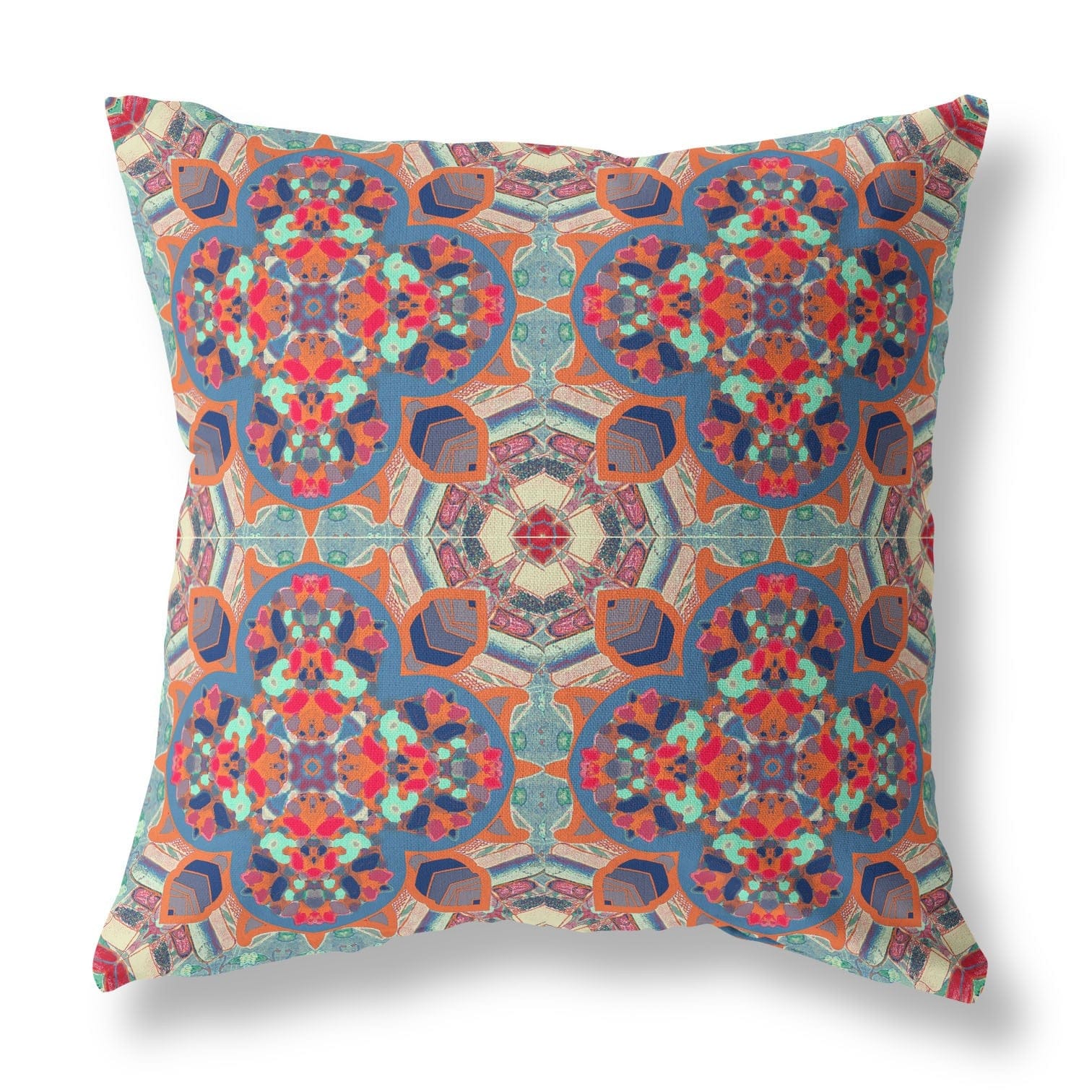 16" Orange Blue Cloverleaf Boho Suede Throw Pillow