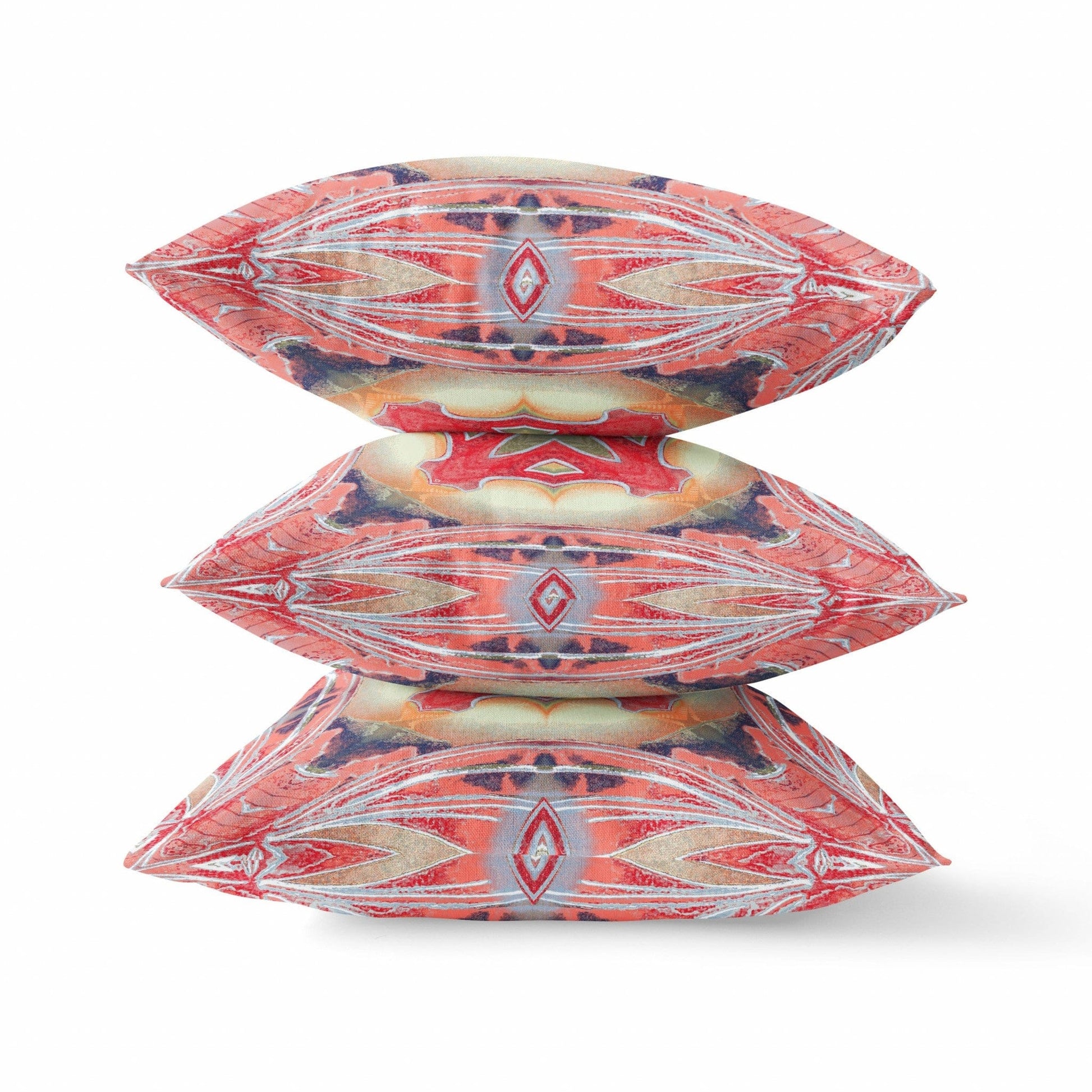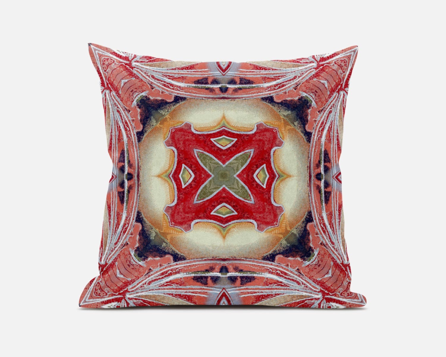 16” Peach Red Geo Tribal Suede Throw Pillow