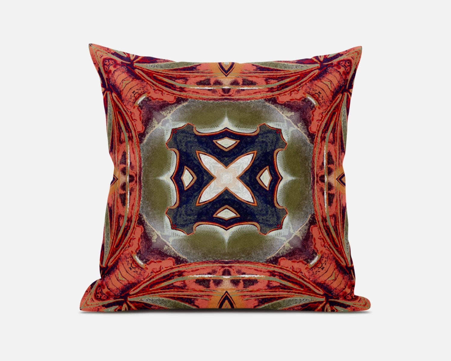 16” Peach Sage Geo Tribal Suede Throw Pillow