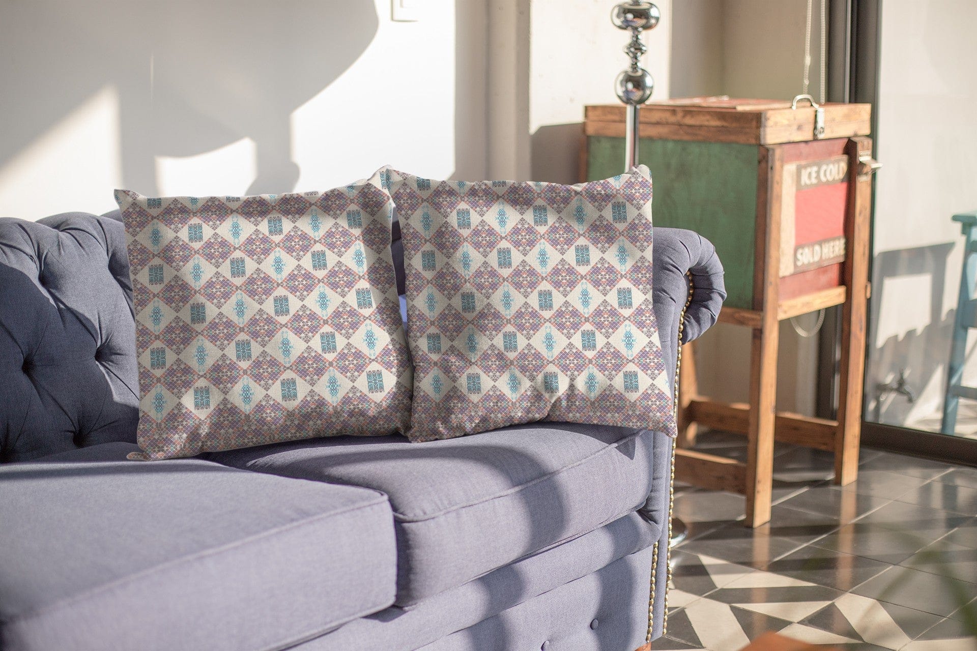 Entertain your love for symmetry and uniqueness with this Pink Lattice Decorative Suede Throw Pillow that is bound to bring calming vibes into your home. This pillow hosts geometric lattice patterns in muted pink, purple, and blue to create a subtle yet stunning visual appeal that will blend in with any modern or bohemian setting. The high-quality digital prints on the pillow are made to last for a long time without losing their pristine look and shine. The deluxe suede fabric featured on the throw pillow gives it a soft and smooth texture while also being durable to last for a long time. This blown pillow comes with a 100% polyester fiber insert, giving it a lavish springy feel with a fluffy nature to provide utmost comfort. Combining on-trend patterns in a pastel color palette, this pillow will add a sense of serenity to your boho-chic home. 16” x 16” x 5”