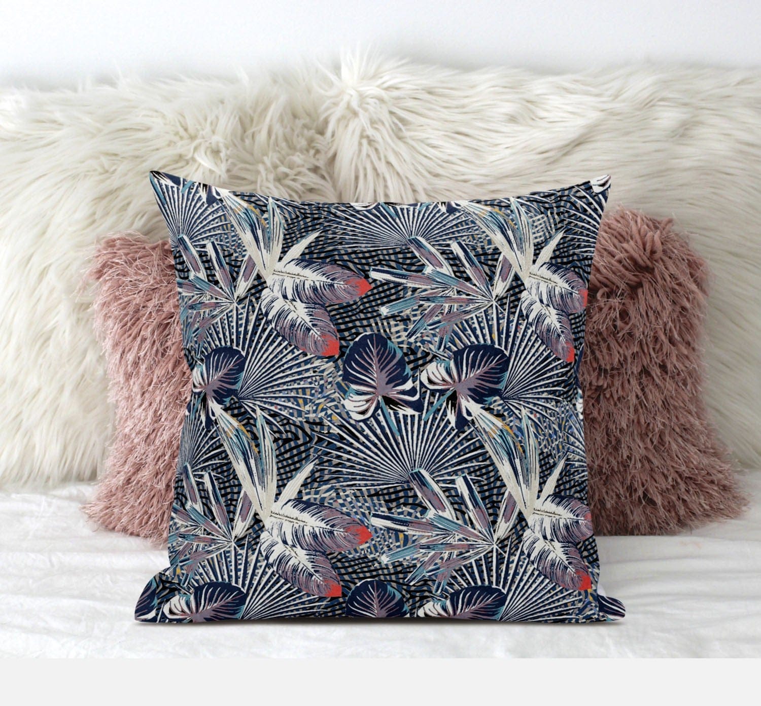 16” Purple Indigo Tropical Zippered Suede Throw Pillow