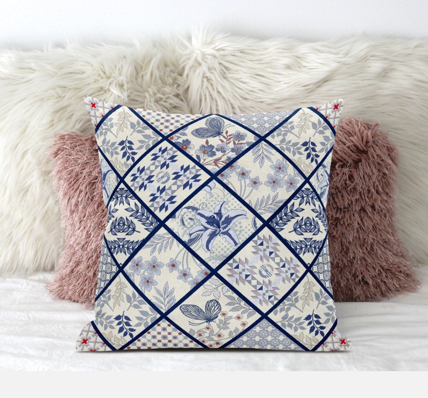 Calm and serene in its cool-toned hues, this White Navy Patch Suede Throw Pillow will enhance the ambiance of your modern home with a bohemian charm. With bold navy blue linework on a white surface, this pillow is beautifully detailed with patches of floral prints that make this pillow piece of art on its own. The deluxe suede fabric featured on the throw pillow gives it a premium feel while also being durable to last for a long time. The versatile blown pillow is also soft to the touch, given its lush polyfill insert, making it super fluffy and comfortable. Bring an element of grace and elegance into your modern place with this decorative throw pillow that exudes a comforting tone with its visual aesthetics. 16” x 16” x 5”