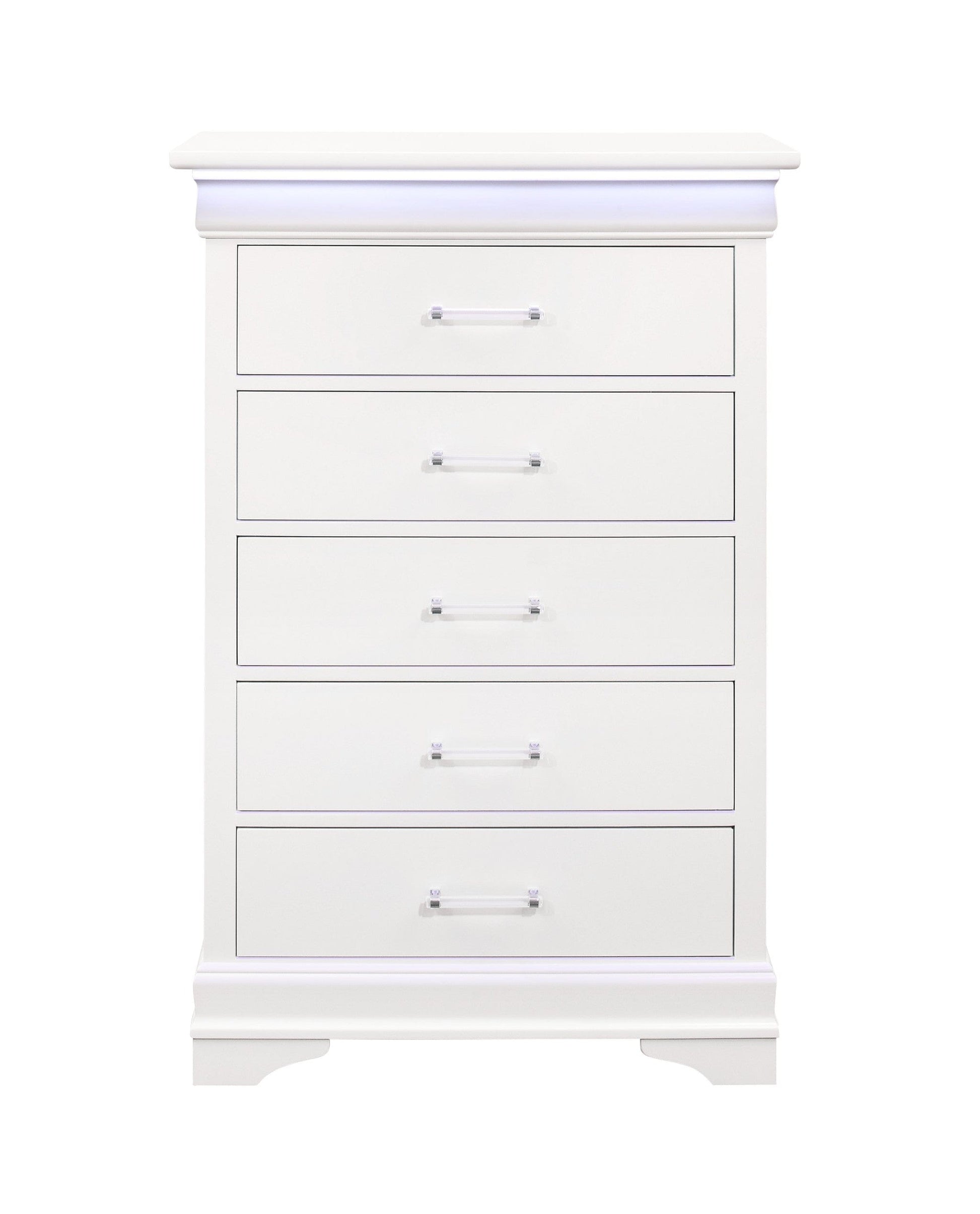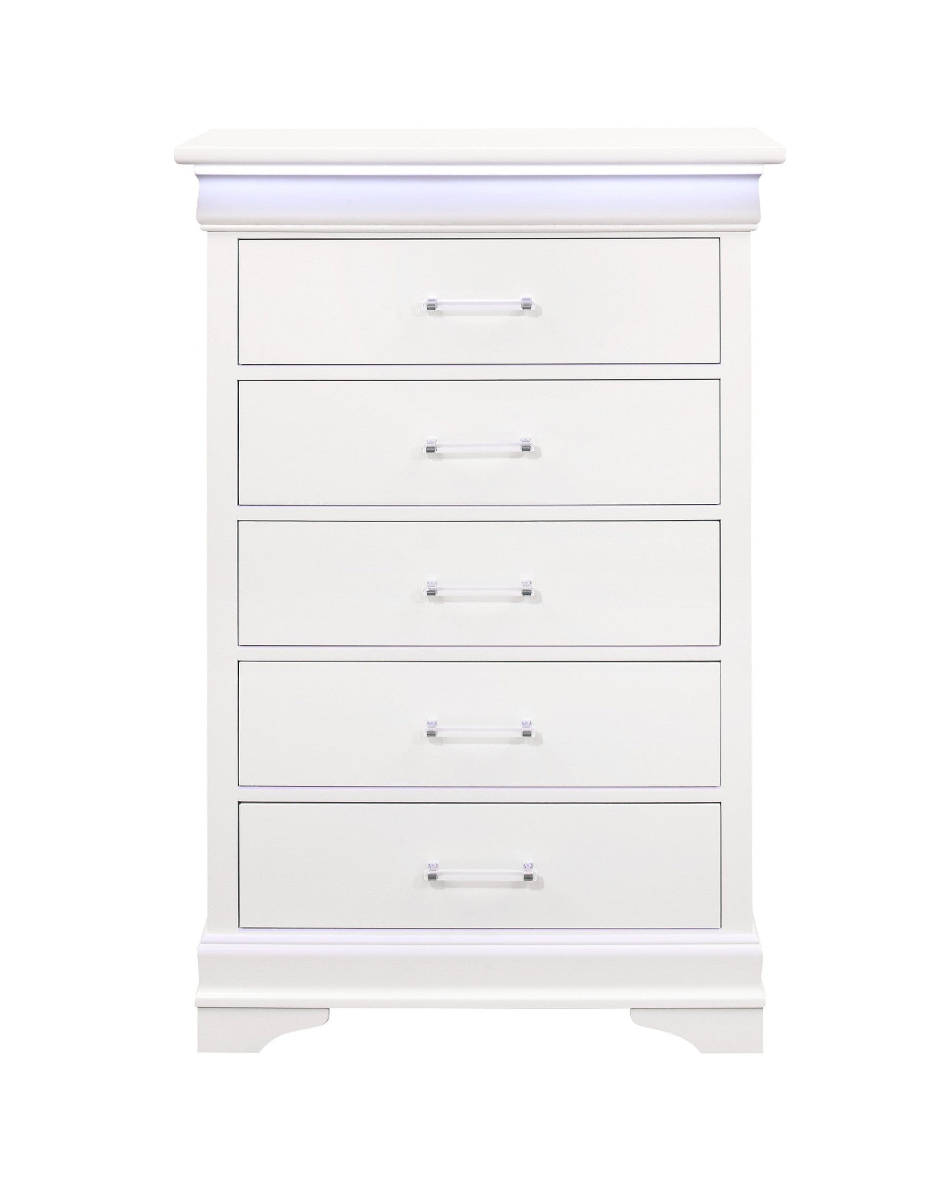 16" White Solid Wood Five Drawer Chest with LED Lighting