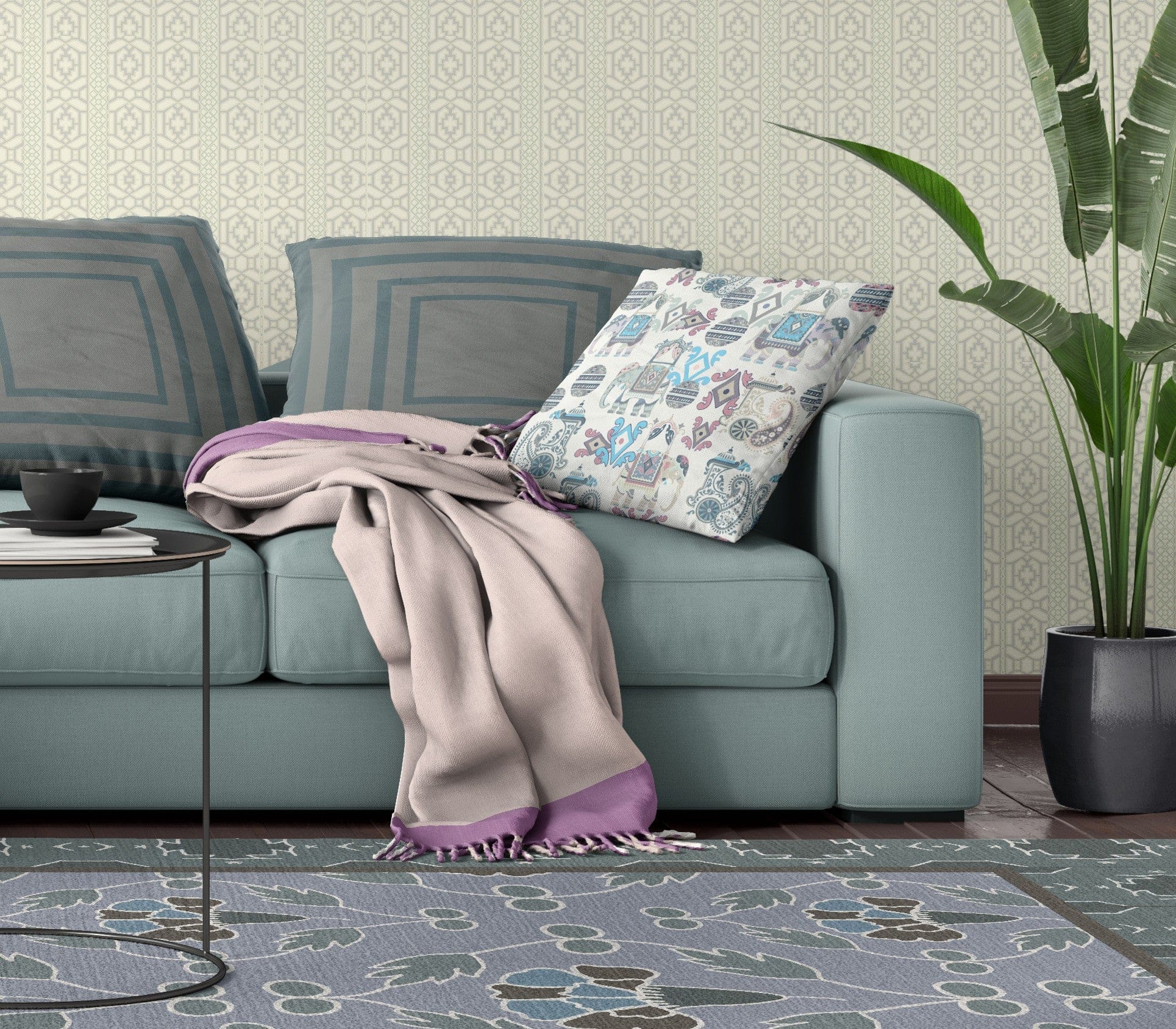 The 16" x 16" beige and blue paisley blown seam suede throw pillow is the perfect decorative accessory for your home. Great to use on its own or mix with other decorations for the perfect look. A great decorative accessory for your favorite chair, to accent your sofa, or to use as part of your bed ensemble. 5" H x 16" W x 16" D