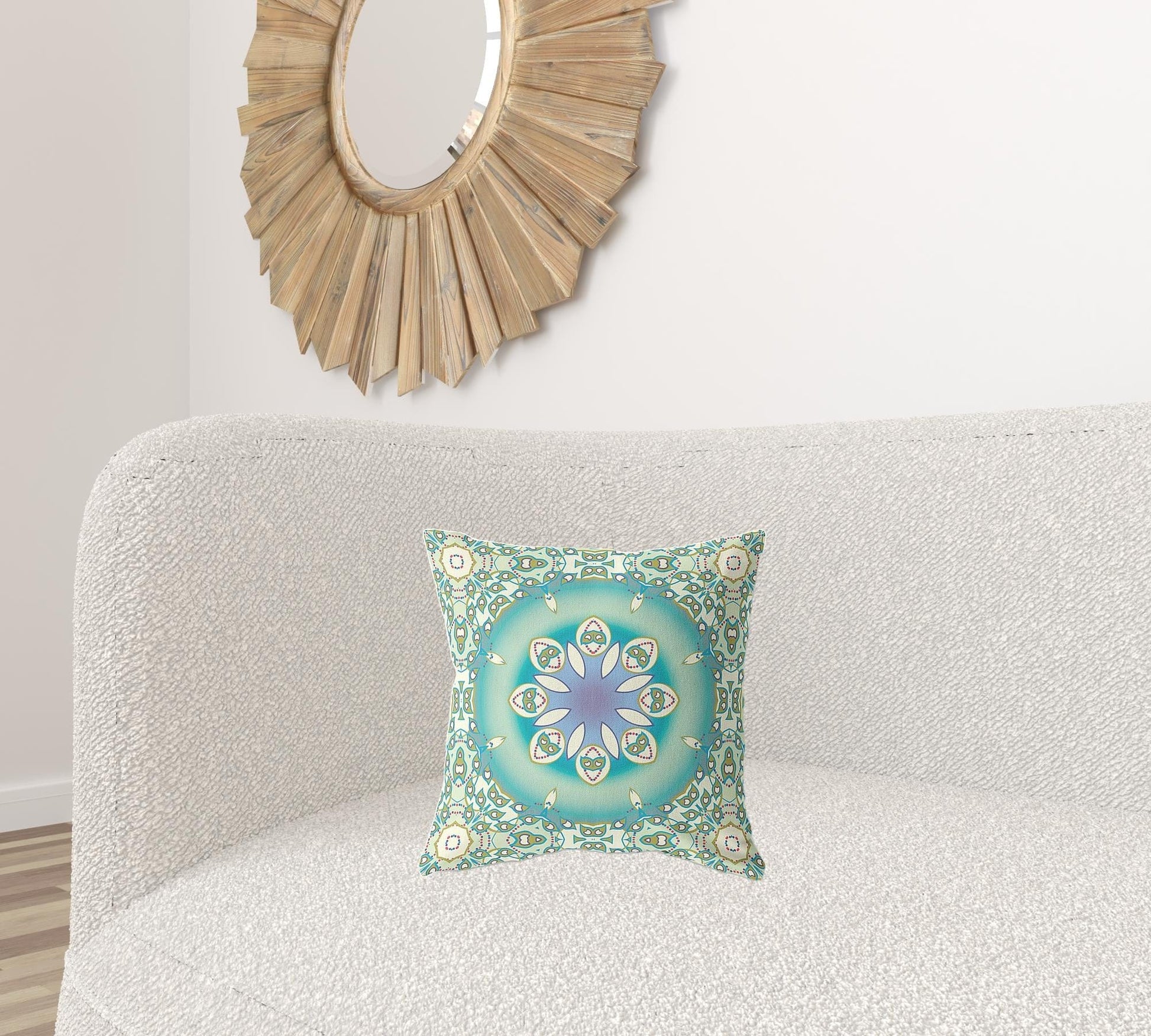 This 16" x 16" beige and green geometric blown seam suede throw pillow will add a beautiful decorative accent to your decor. Great to use on its own or mix with other decorations for the perfect look. Decorative pillows are a great way to change up the look and feel of your space easily and quickly. 5" H x 16" W x 16" D