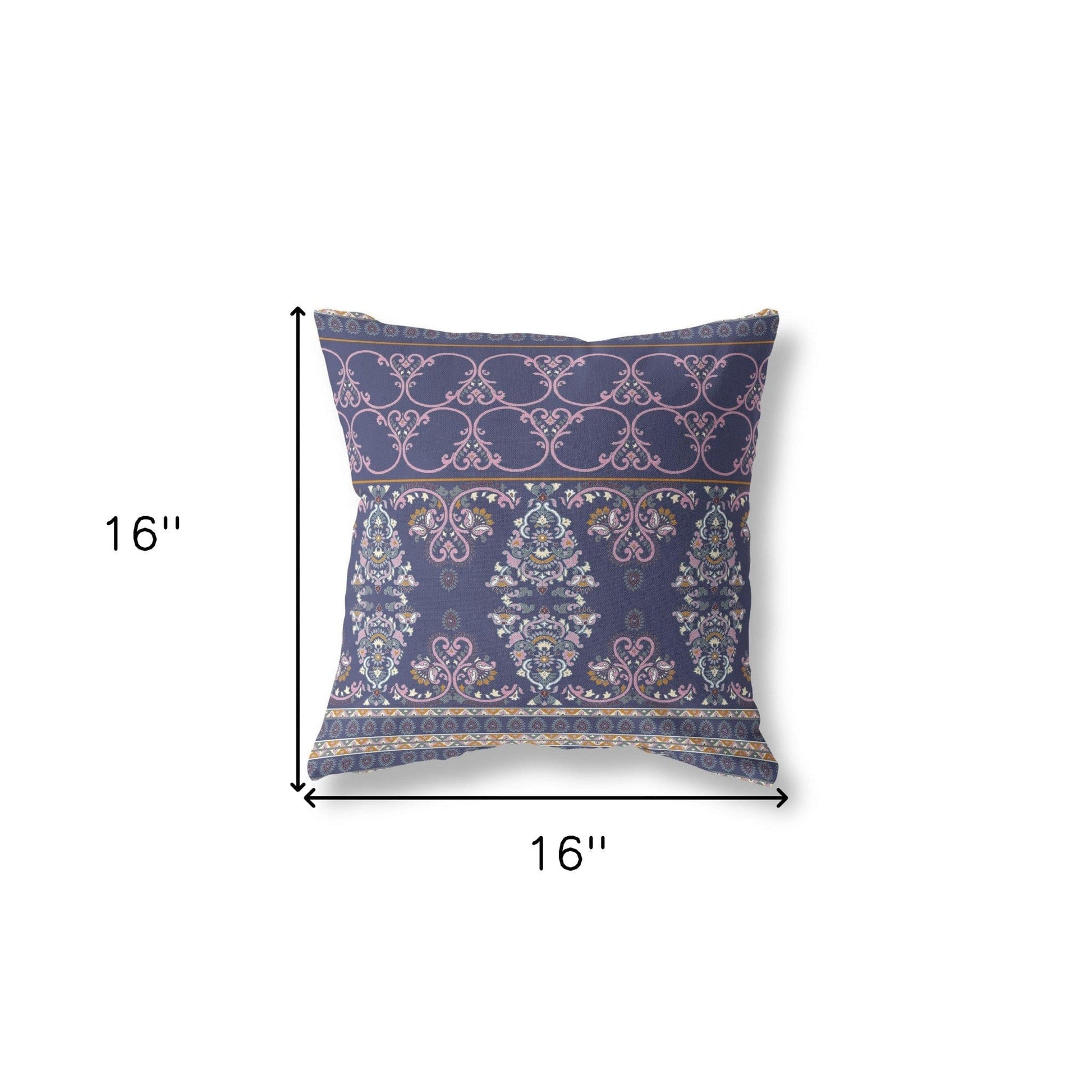 16" X 16" Blue And Pink Stencil Blown Seam Suede Throw Pillow