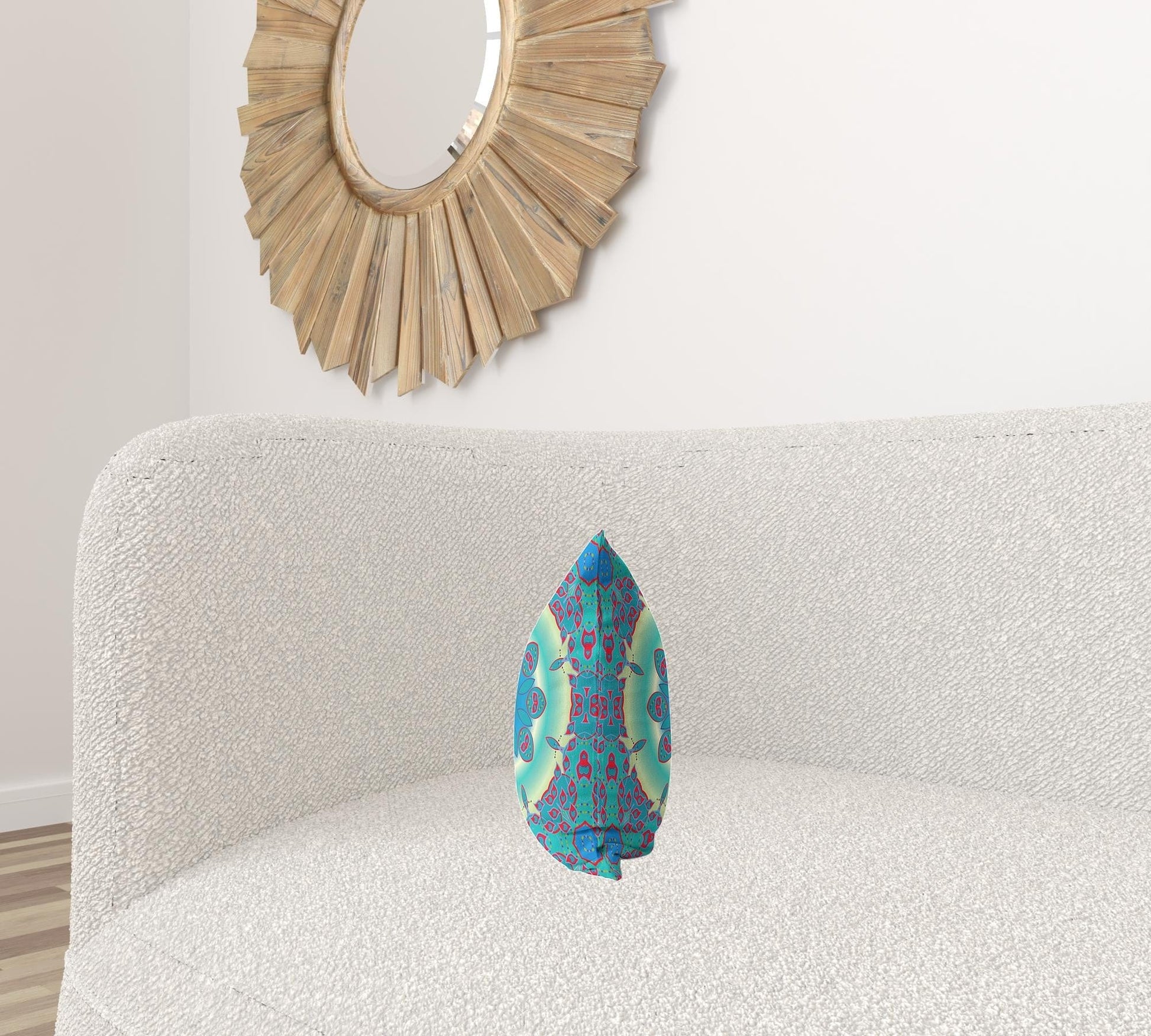 16" X 16" Green And Red Geometric Blown Seam Suede Throw Pillow