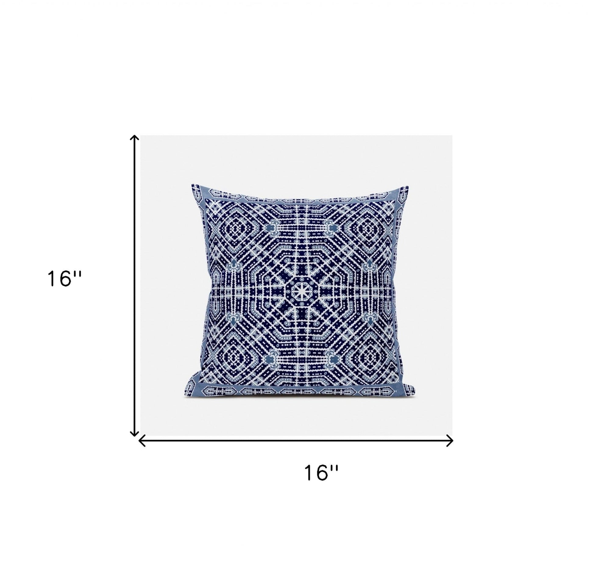16" X 16" Indigo White Green Geometric Blown Seam Suede Throw Pillow