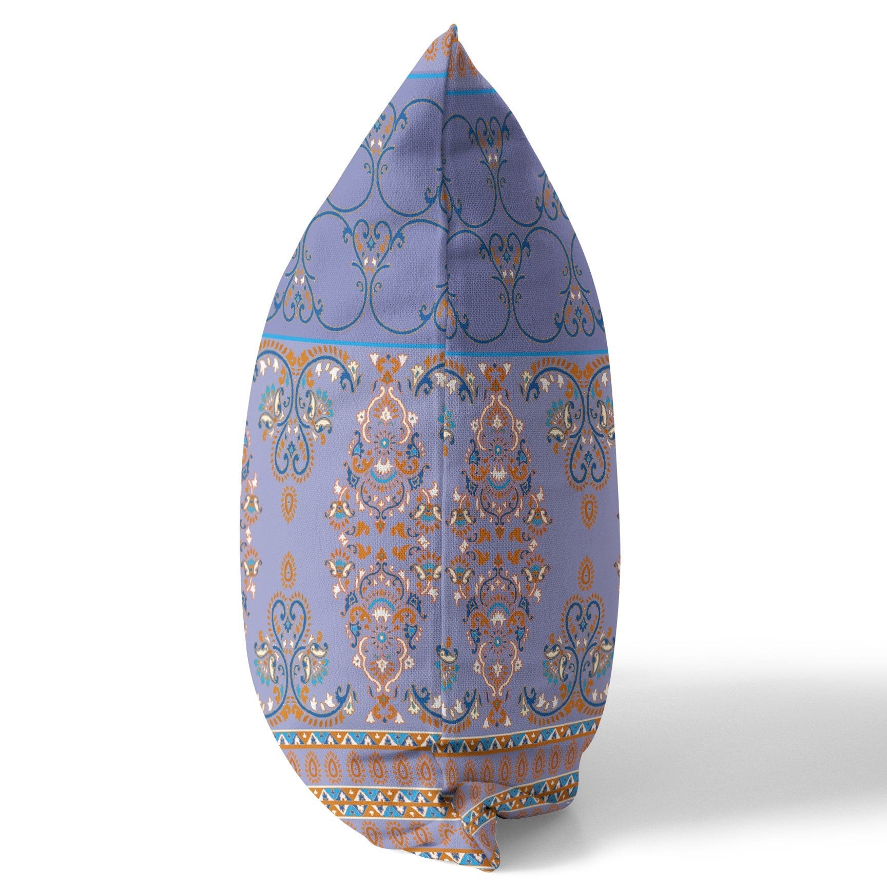 16" X 16" Purple And Blue Stencil Blown Seam Suede Throw Pillow