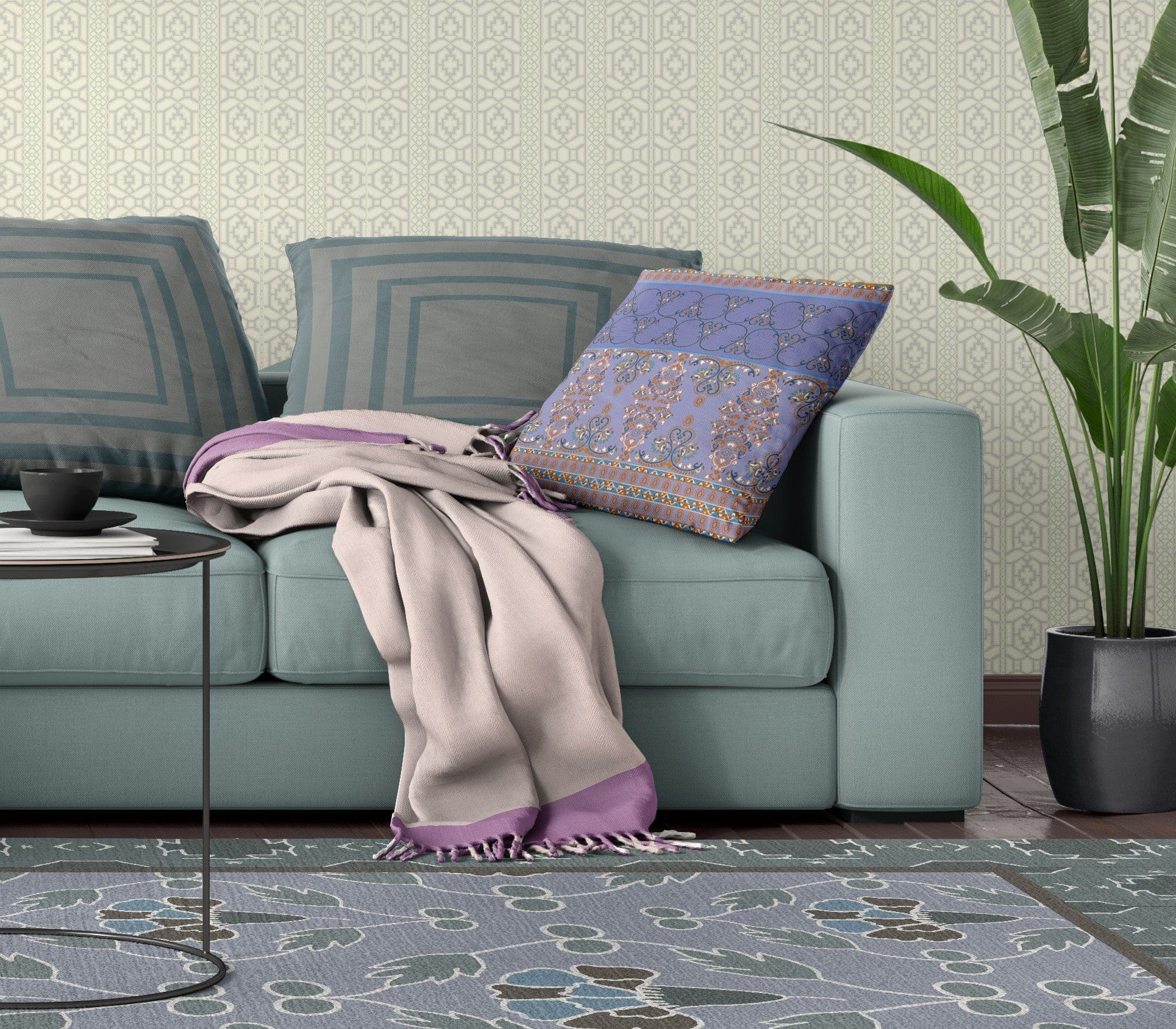 Unique and decorative, this comfortable 16" x 16" purple and blue stencil blown seam suede throw pillow will leave a lasting impression. Decorative throw pillows not only add color and dimension to your space but can be comfy and supportive when you are lounging and cuddling as well. Decorative pillows are a great way to change up the look and feel of your space easily and quickly. 5" H x 16" W x 16" D