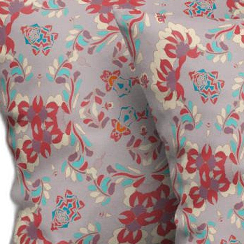 16" X 16" Purple And Red Abstract Blown Seam Suede Throw Pillow