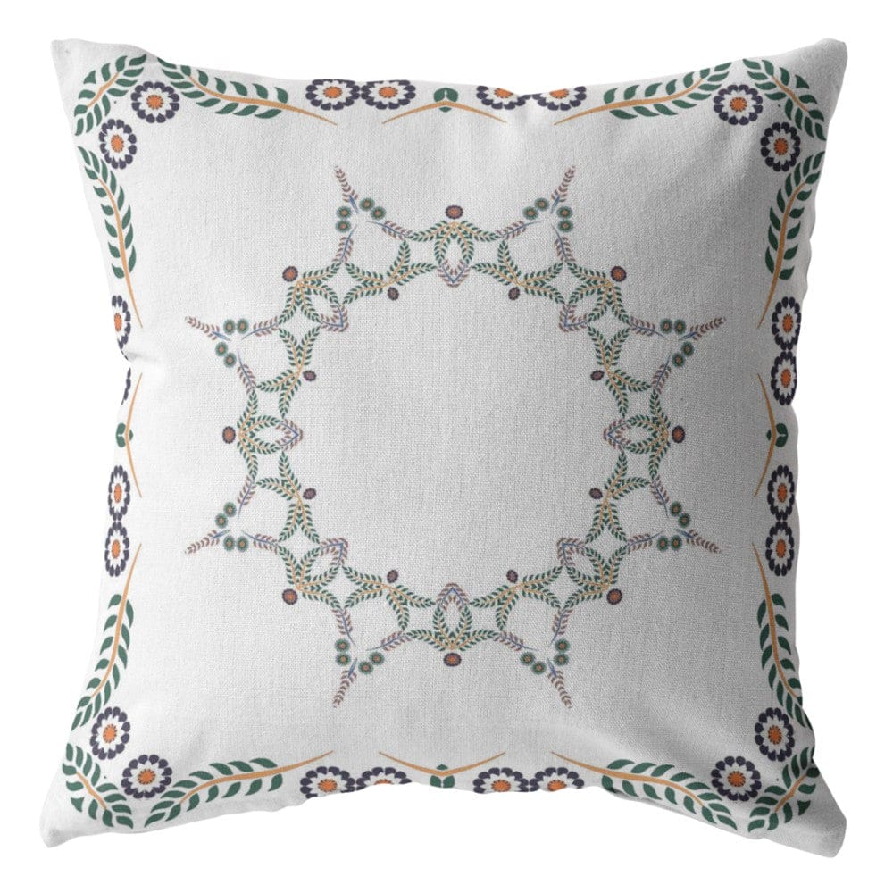 Unique and decorative, this comfortable 16"x16" white zippered suede floral throw pillow will leave a lasting impression. High-quality white suede has been used to make it it both good looking and hard wearing for everyday use. Makes a perfect decorative addition for anyone who loves a stylish look and feel. You can be certain that you'll be leaving an impression with this unique piece. 5" H x 16" W x 16" D