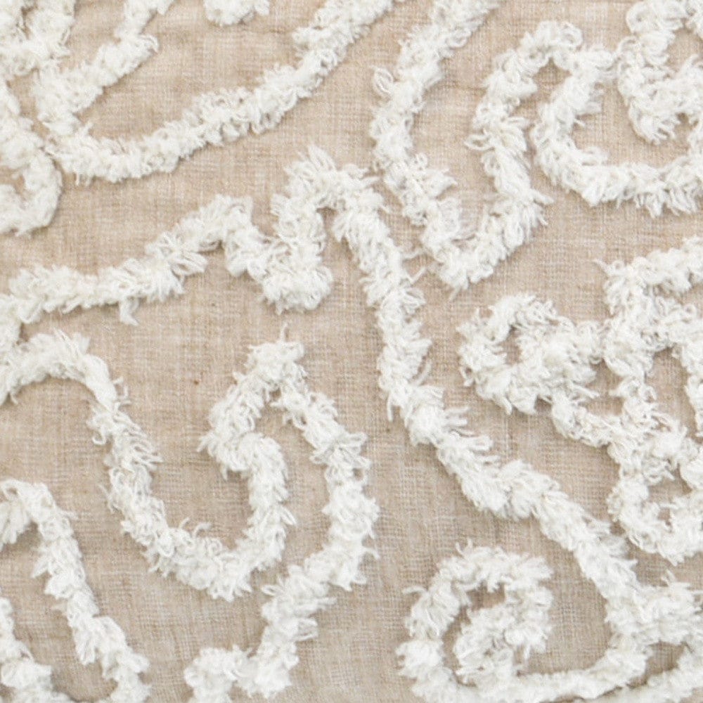 Bring a bit of fashion and zip to your space with this eye-catching and comfy 17" x 17" beige and white abstract zippered polyester throw pillow with tassels. Fun and decorative tassels add some high end and hand-crafted textural designer touches. Great to use on its own or mix with other decorations for the perfect look. A great decorative accessory for your favorite chair, to accent your sofa, or to use as part of your bed ensemble. 4" H x 17" W x 17" D