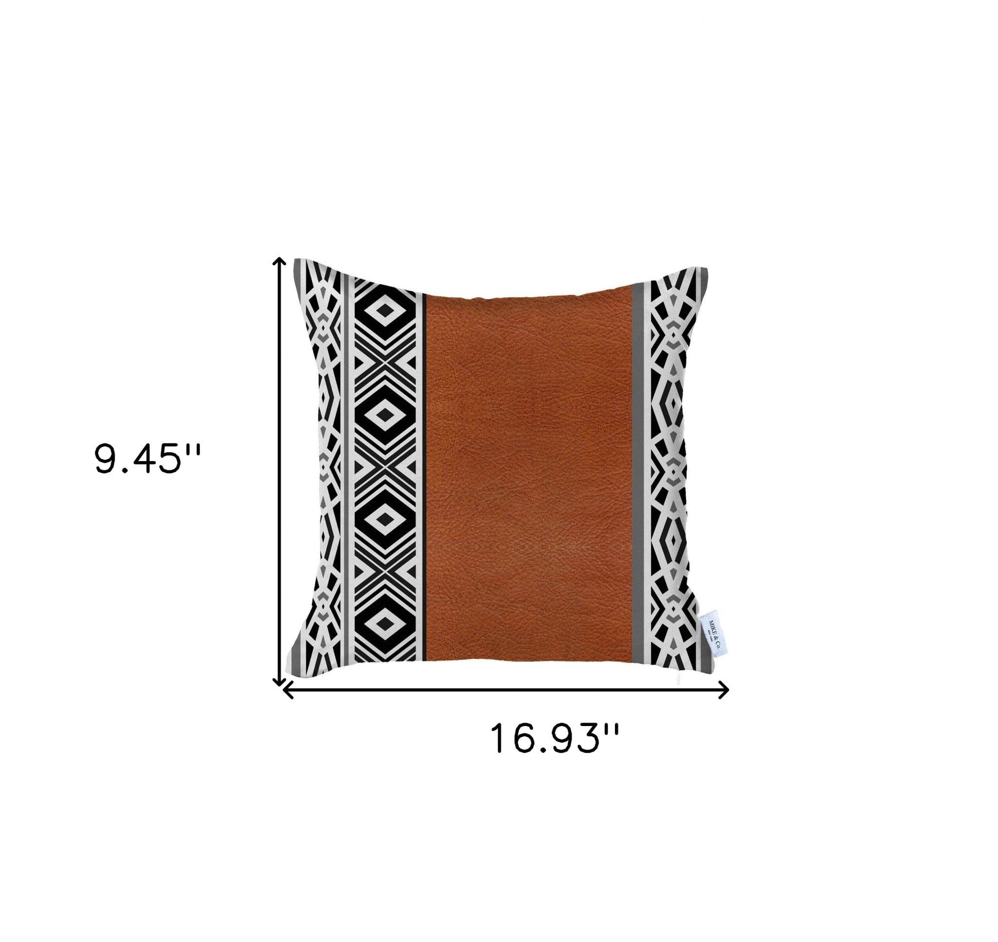 17" X 17" Brown Geometric Zippered Handmade Faux Leather Throw Pillow Cover