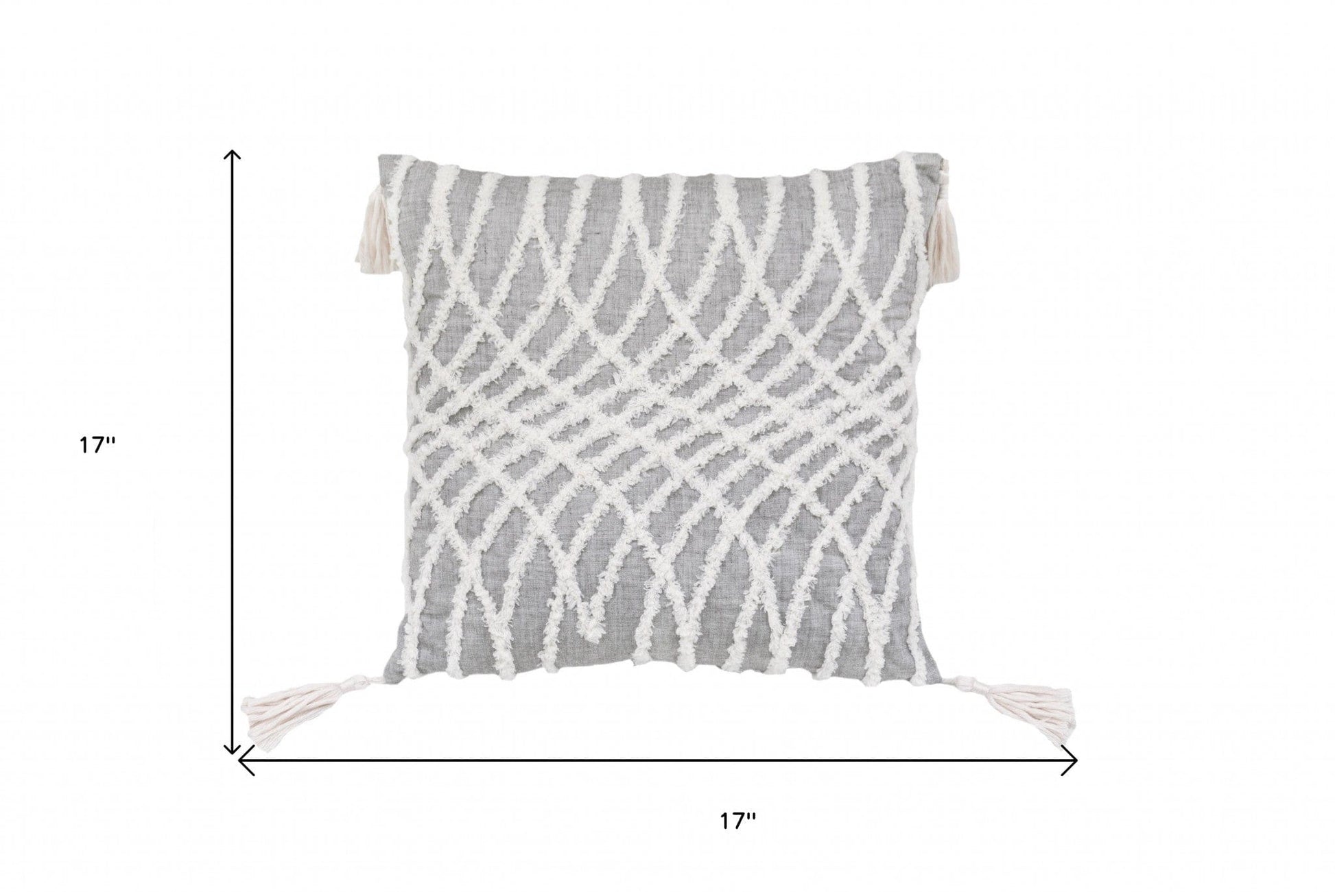 17" X 17" Grey And White Interlocking Zippered Polyester Throw Pillow With Tassels