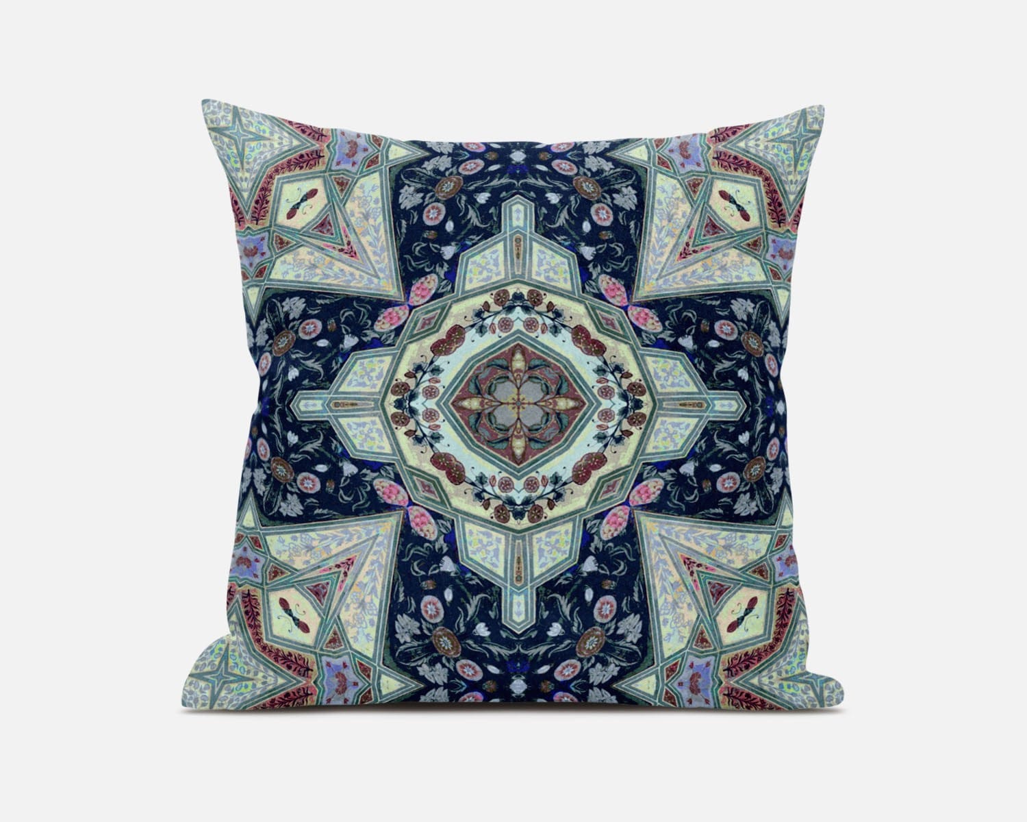 18” Aqua Blue Boho Pattern Zippered Suede Throw Pillow