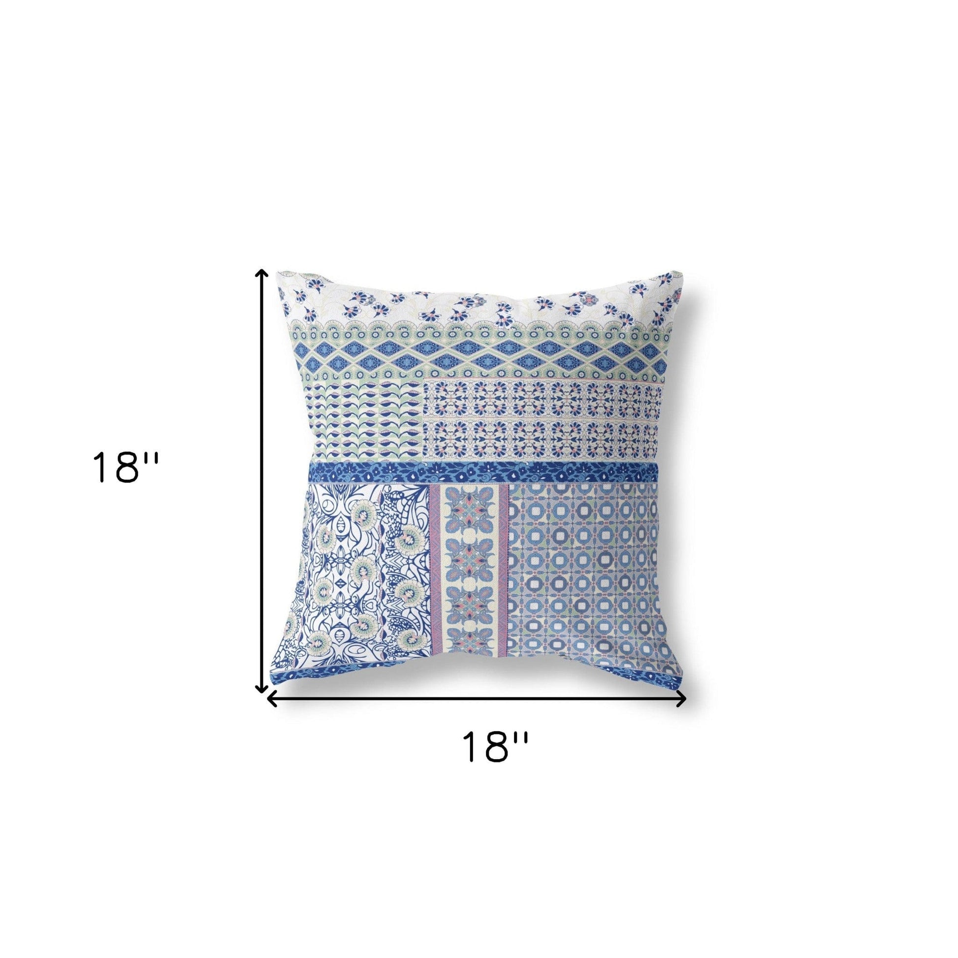 Calm, casual, and comforting in its pleasant palette and patterns, this Blue Lavender Patch Blown & Closed Suede Throw Pillow is sure to grace your bohemian space with a sense of tranquility. The soft shades of blues blend with the cool-toned lavender and mint on the white base for an eye-soothing combination. The sleek and smooth suede fabric"™s presence provides this cushion with a sumptuous and opulent look while ensuring long-lasting durability to serve you in the coming years with satisfaction. This blown and closed pillow features a soft polyfill insert that adds to the plush fluffy look maximizing warmth and comfort. Calm yet captivating at the same time, this decorative pillow is sure to complement any boho-chic interior without being loud. 18" x 18" x 5"
