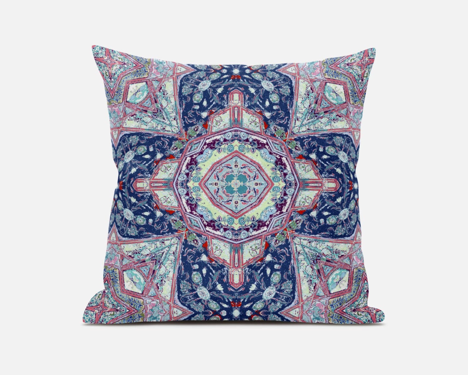 18” Blue Pink Floral Geo Zippered Suede Throw Pillow
