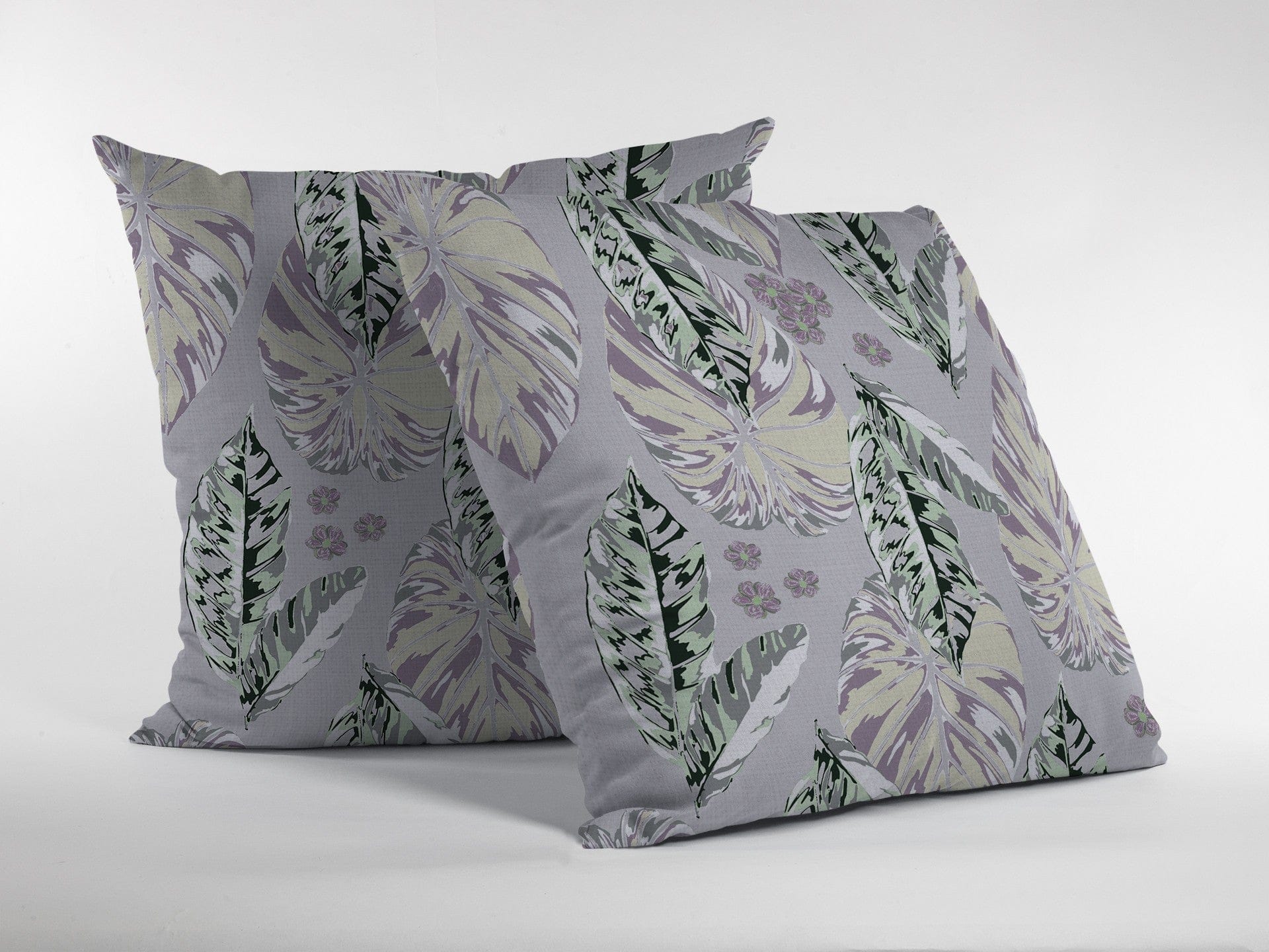 Combining the cool tones of the spectrum in stunning tropical artistry, this Blue Purple Tropical Leaf Zippered Suede Throw Pillow exudes a relaxing vibe to spruce up your living space. The soft gray base is heightened by the tropical leaf prints in subtle shades of muted purple, white, and black for an eye-soothing visual appeal. Draped in high-quality soft suede fabric for enhanced durability and a smooth finish with a lustrous sheen. The pillow comes with a neatly done zippered cover and includes a durable polyfill insert for a cushiony feel with a fluffy nature, making it an ideal accent for your indoor settings. If you want a sense of serenity into your place without introducing contrasting hues, this decorative throw pillow is just the perfect pick for you. 18” x 18” x 5”