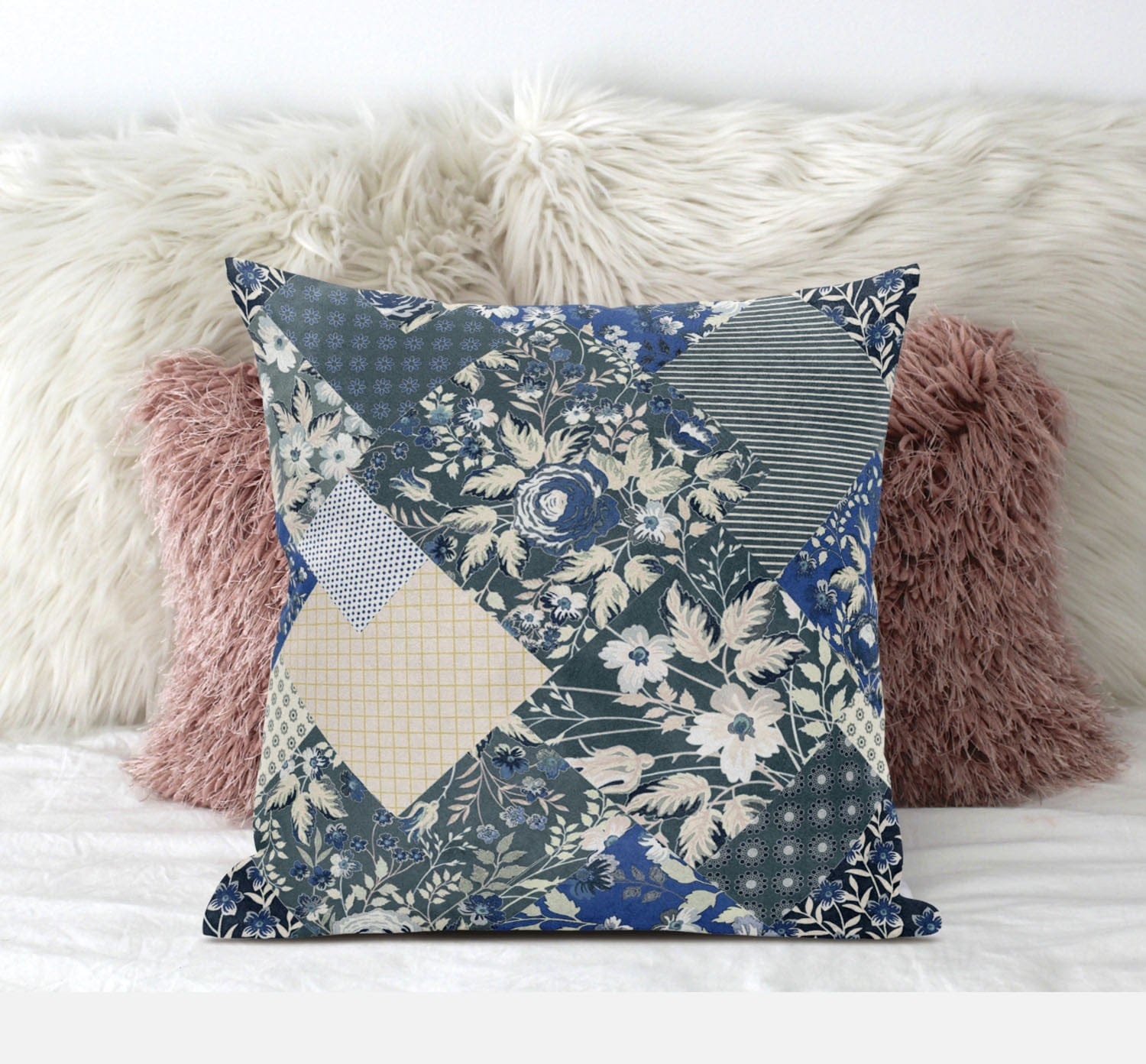 Make a bold statement into your living space with this Gray Cream Floral Suede Throw Pillow that will add an element of style and elegance to your home. With patches of floral and geometric design in deep gray, blue, and cream, this pillow is bound to grab attention. This blown pillow features a high-quality polyfill insert from optimum comfort while making the piece super fluffy for a luxurious feel on the touch. Made in the United States from top-notch suede fabric, which is highly durable to last for a long time, while the soft and smooth surface texture provides a glossy sheen for a plush appearance. Pair this decorative throw pillow with neutral-toned decors for a striking contrast in your contemporary or bohemian space. 18” x 18” x 5”