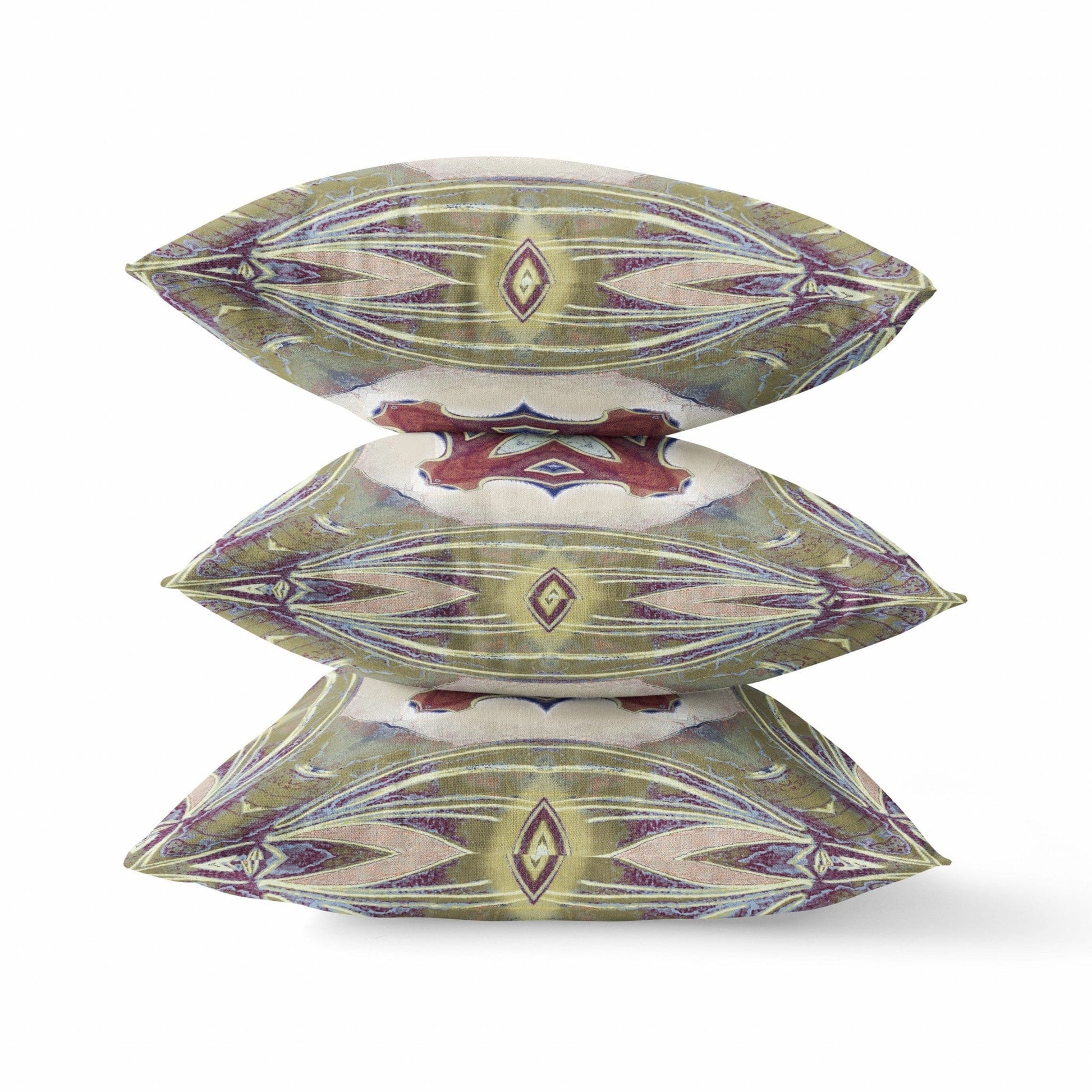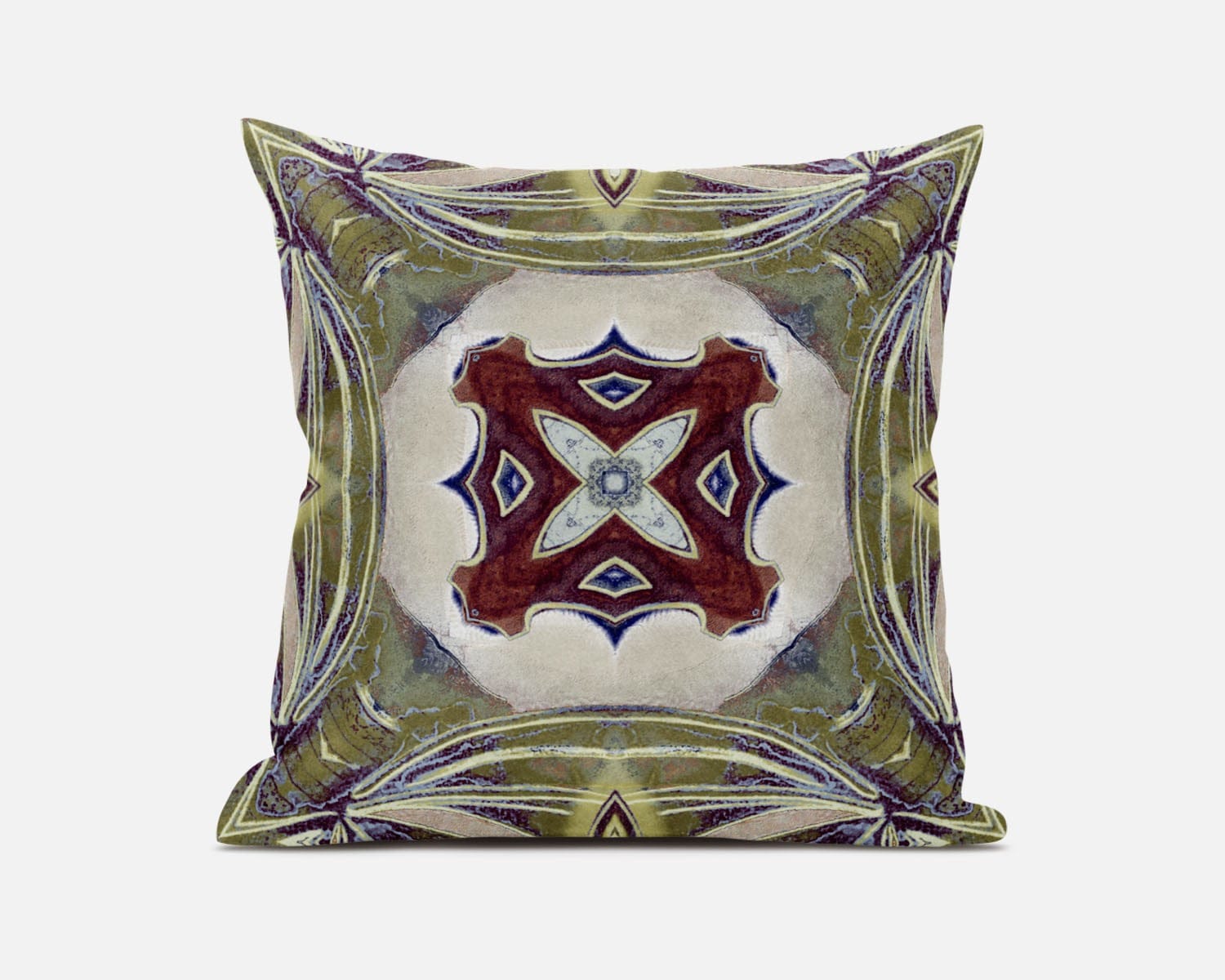 18” Green Brown Geo Tribal Suede Throw Pillow