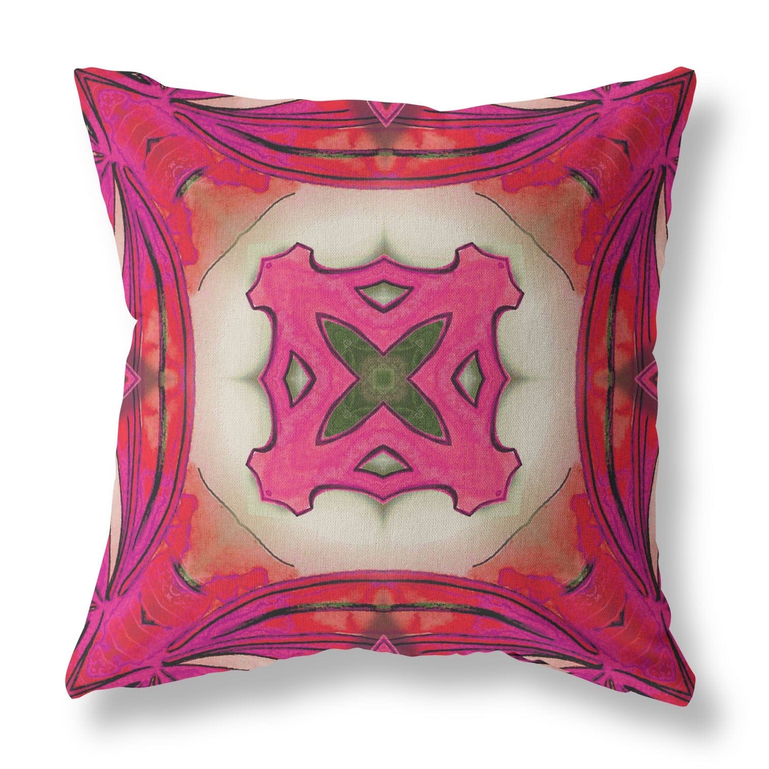 18” Hot Pink Geo Tribal Suede Throw Pillow