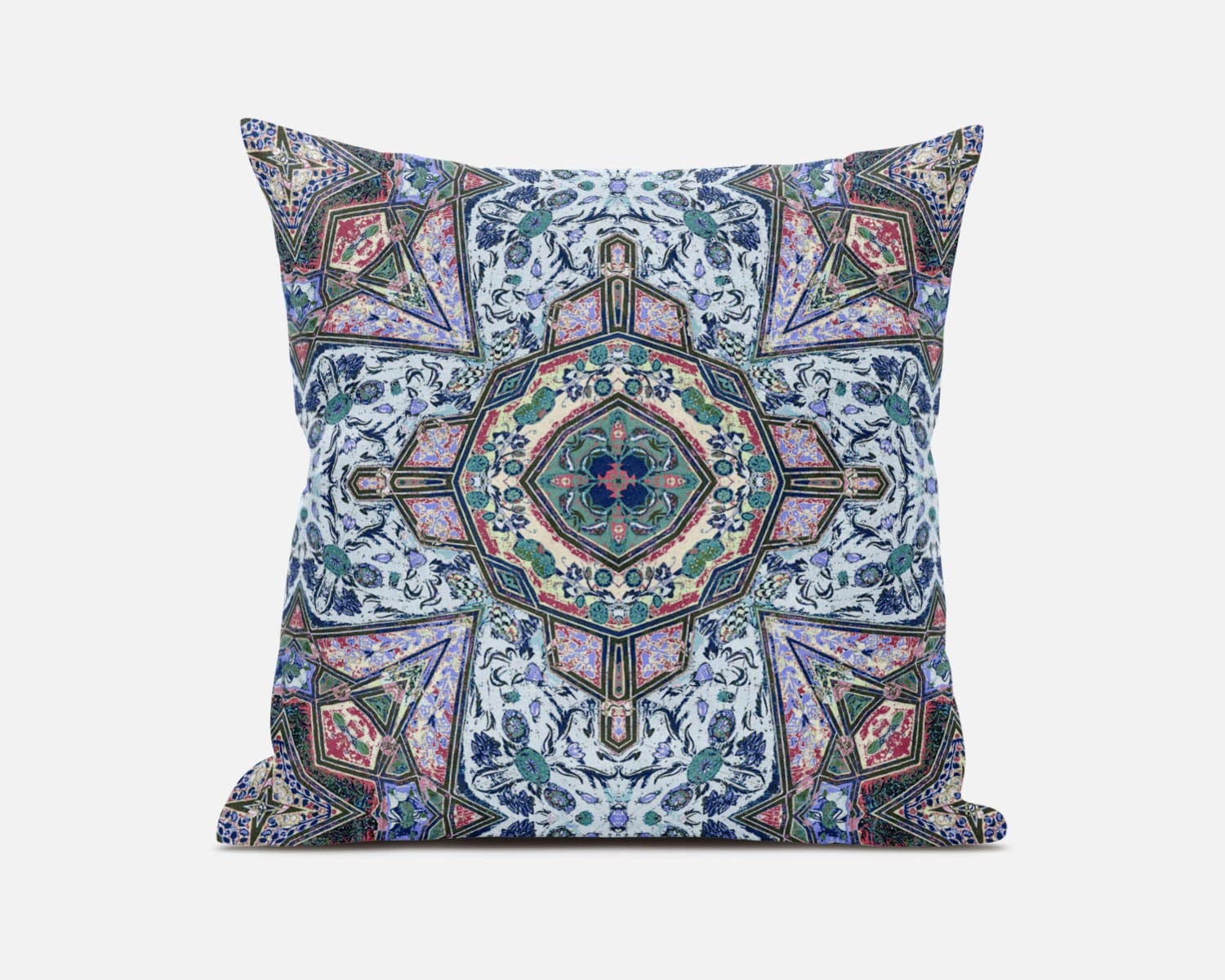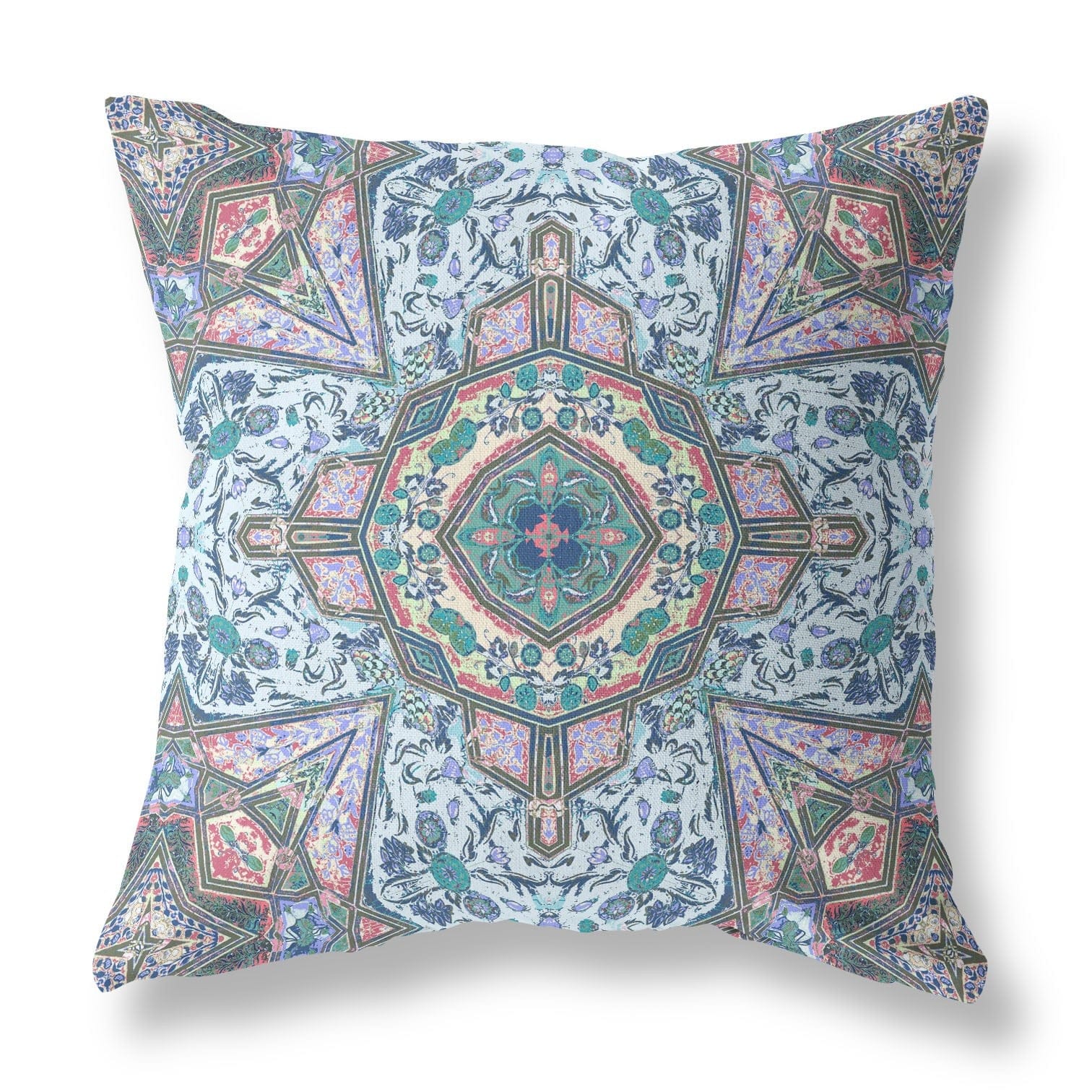 18" Pale Blue Pink Floral Medallion Suede Throw Pillow
