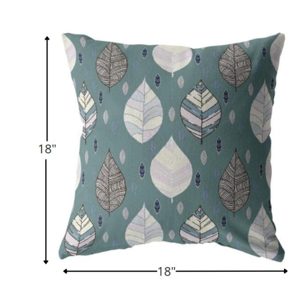 18” Pine Green Leaves Suede Zippered Throw Pillow