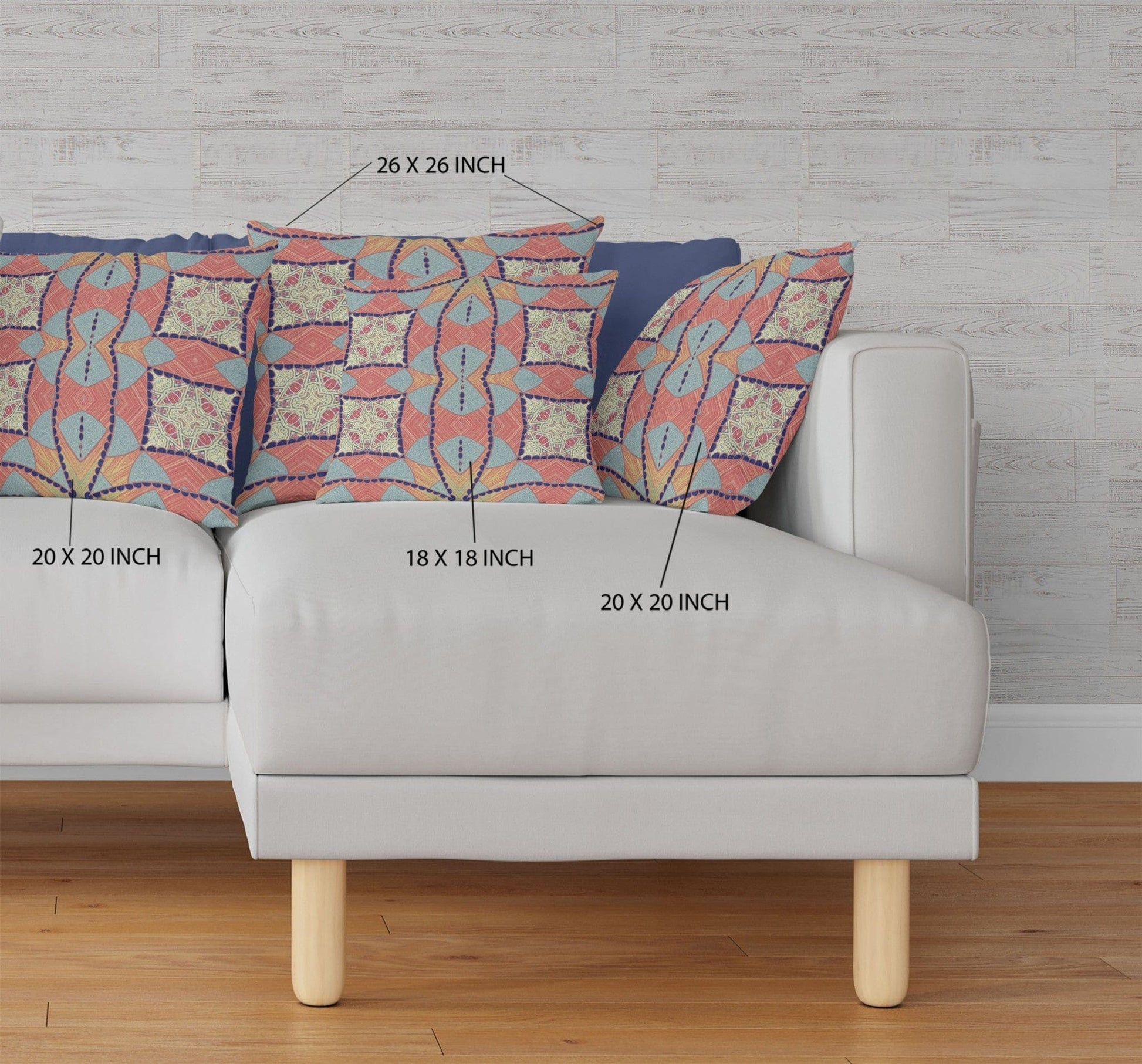 Express your love for colors and patterns with this stunning Red Indigo Cosmic Circle Boho Suede Throw Pillow in your modern or bohemian living room. The exquisite fusion of muted red and blue tones is used to create geometric structures with indigo dotted accents fashioned to form cosmic circle patterns for visual interest. This blown pillow is crafted from premium-quality suede fabric which is characterized by its soft and smooth surface texture for a delicate feel. With a durable polyfill insert, this pillow feels super soft with a fluffy look that makes it an excellent decorative accent in terms of fashion and functionality. Made to mesh perfectly with boho-chic homes, this decorative throw pillow is a spectacular piece of décor to transform your home today. 18” x 18” x 5”