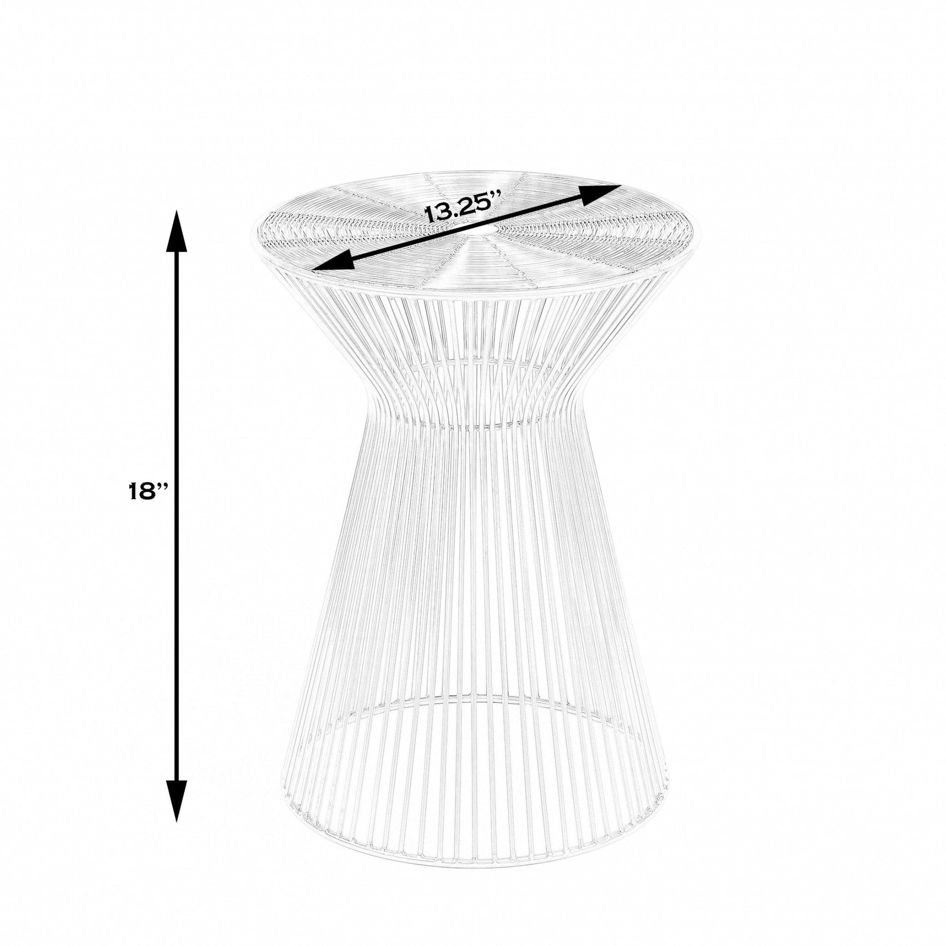 Distinctive in style the 18" white cinched iron round end table radiates a versatile charm. This table is made from iron in a white color throughout the base and top. Complete with a purposefully distressed finish, this table has an aged, vintage, and rustic feel. An ideal location for placing your snacks and drinks, and a place to keep your lamp, frames, or other accessories. This versatile table is a great accent for most any room. 18" H x 13.25" W x 13.25" D