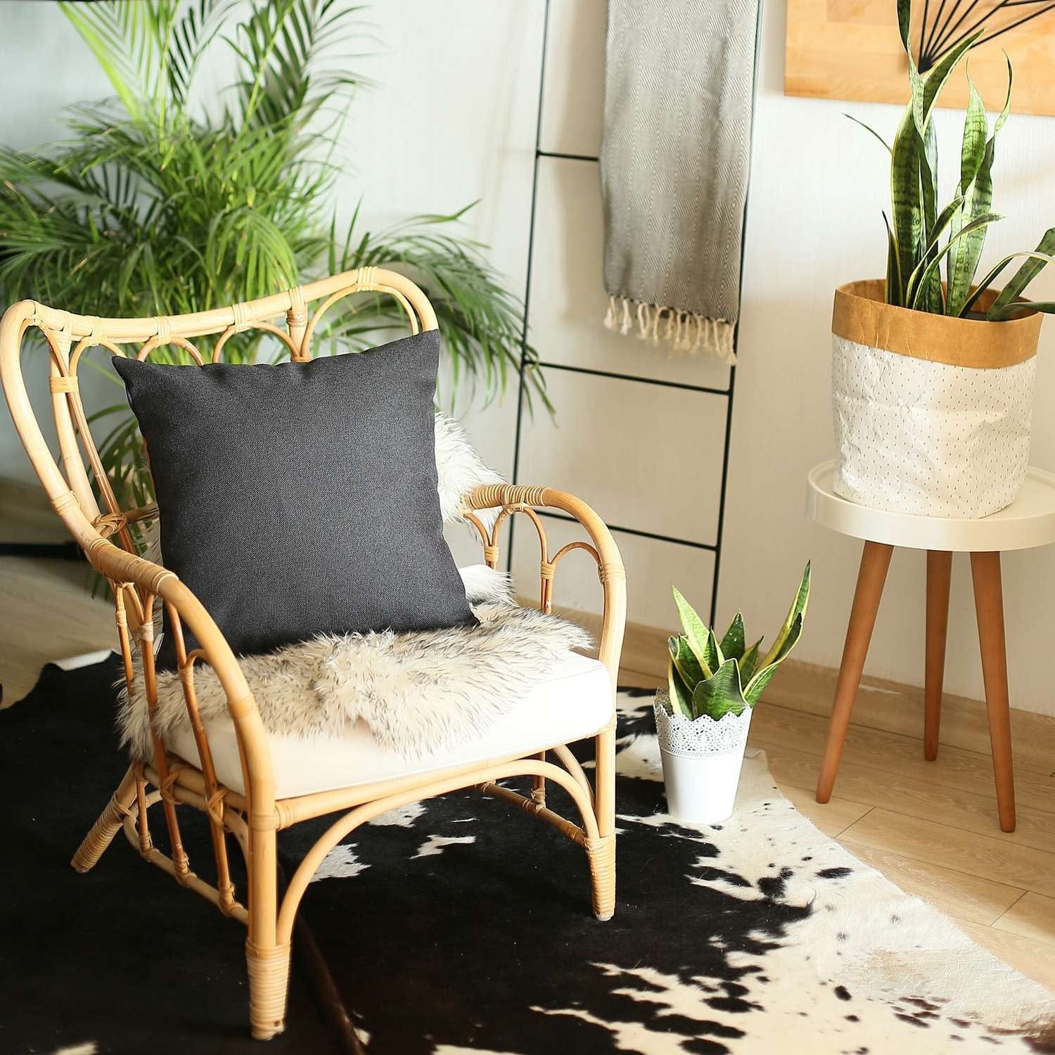18" X 18" Black Solid Color Zippered Handmade Polyester Throw Pillow Cover