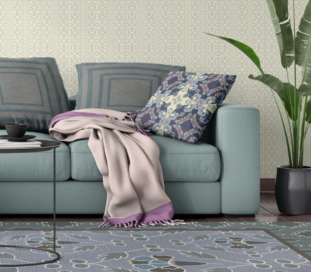 | Keywords | blown seam suede throw pillow, seam suede throw pillow, blue white floral blown seam, suede throw pillow, 18" X 18" blue white floral |