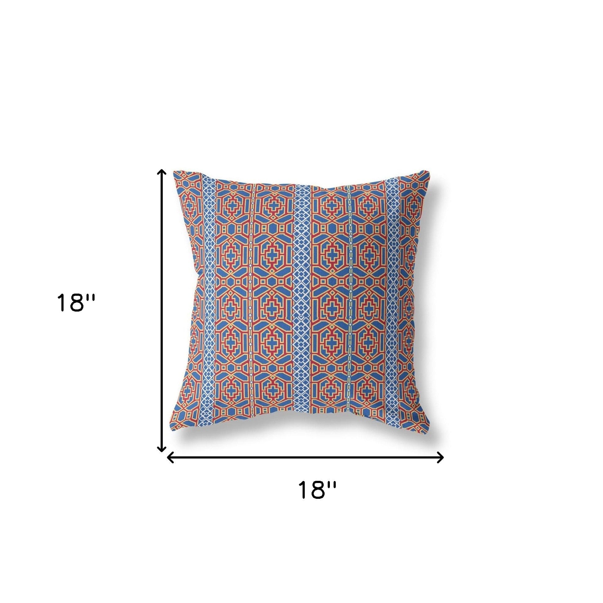 18" X 18" Blue And Red Geometric Blown Seam Suede Throw Pillow
